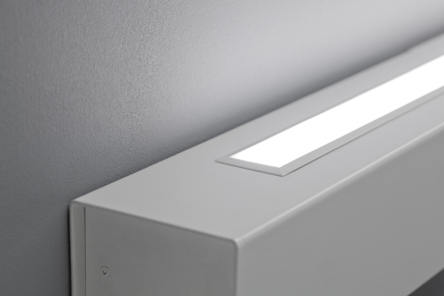 La funzionalità non mette però in secondo piano l’estetica: la struttura di Decano è stata studiata in modo da nascondere la superficie inferiore dove sono alloggiati il modulo a emissione diretta, le prese di corrente ed i pulsanti di chiamata così che, visto frontalmente, l’apparecchio illuminante risulti pulito e lineare.