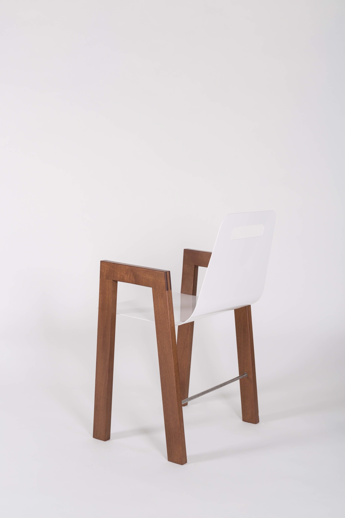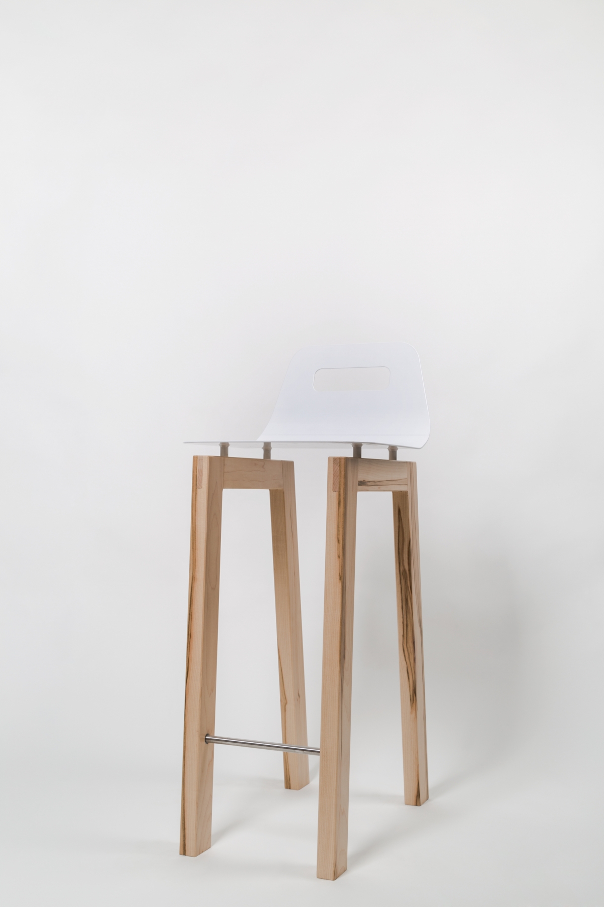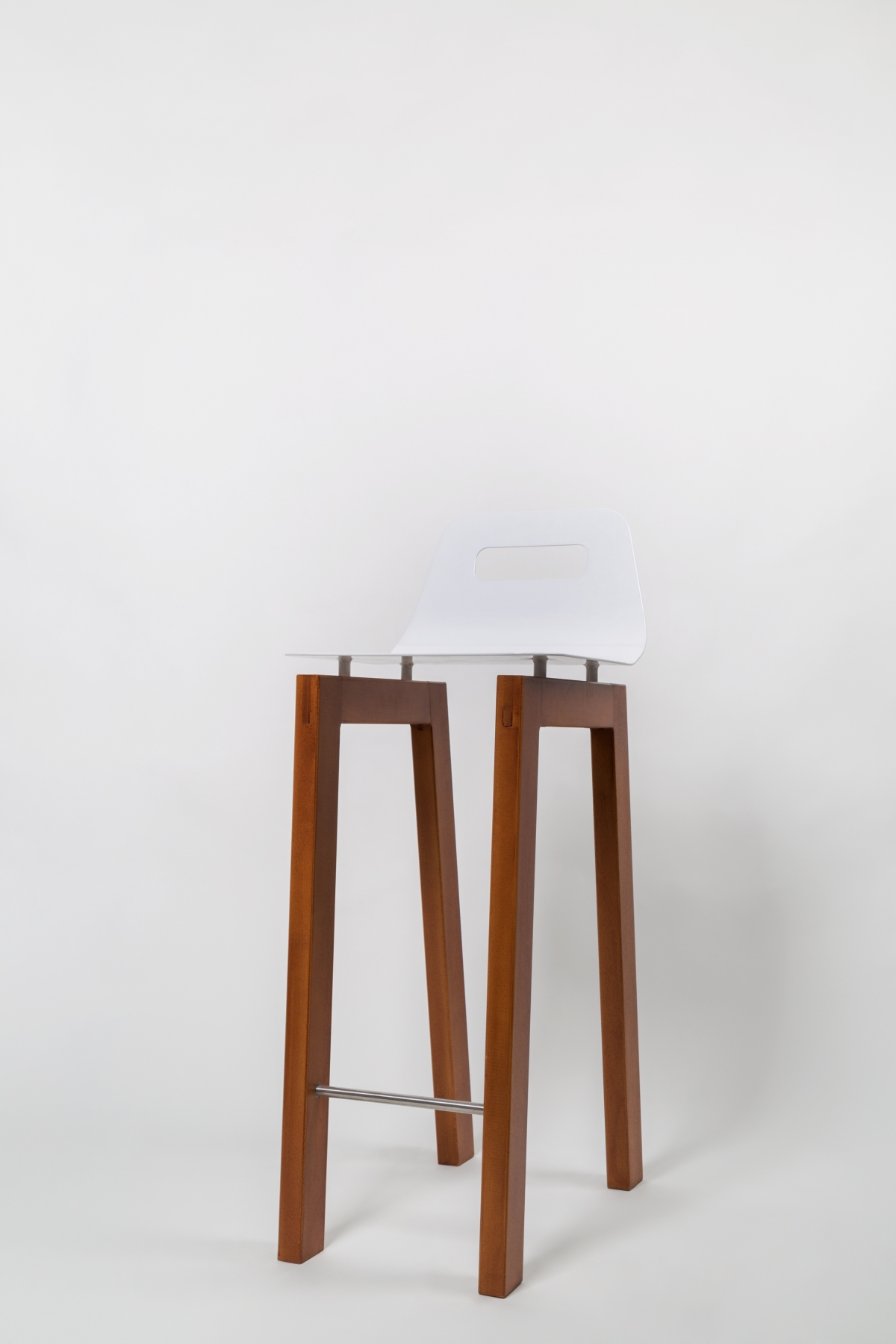 “Timo chair”e “Timo stool”, design Michelangelo Olivieri per m12 AD. Seduta in metallo smaltato e struttura in legno massello dalle infinite possibilità di personalizzazione.