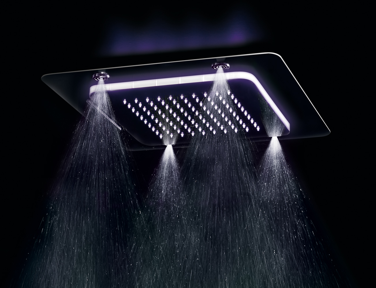 Per gli amanti della cromoterapia, Fir Italia propone diverse varianti di soffioni doccia dotati di un sistema di cromoterapia a otto colori, con funzionamento indipendente dall’utilizzo dell’acqua. Attraverso il telecomando impermeabile si può scegliere un colore tra rosso, verde, blu, giallo, viola, azzurro, violetto e bianco, oppure ancora avviare la transizione automatica da una tonalità all’altra, e godere dei benefici effetti della cromoterapia.