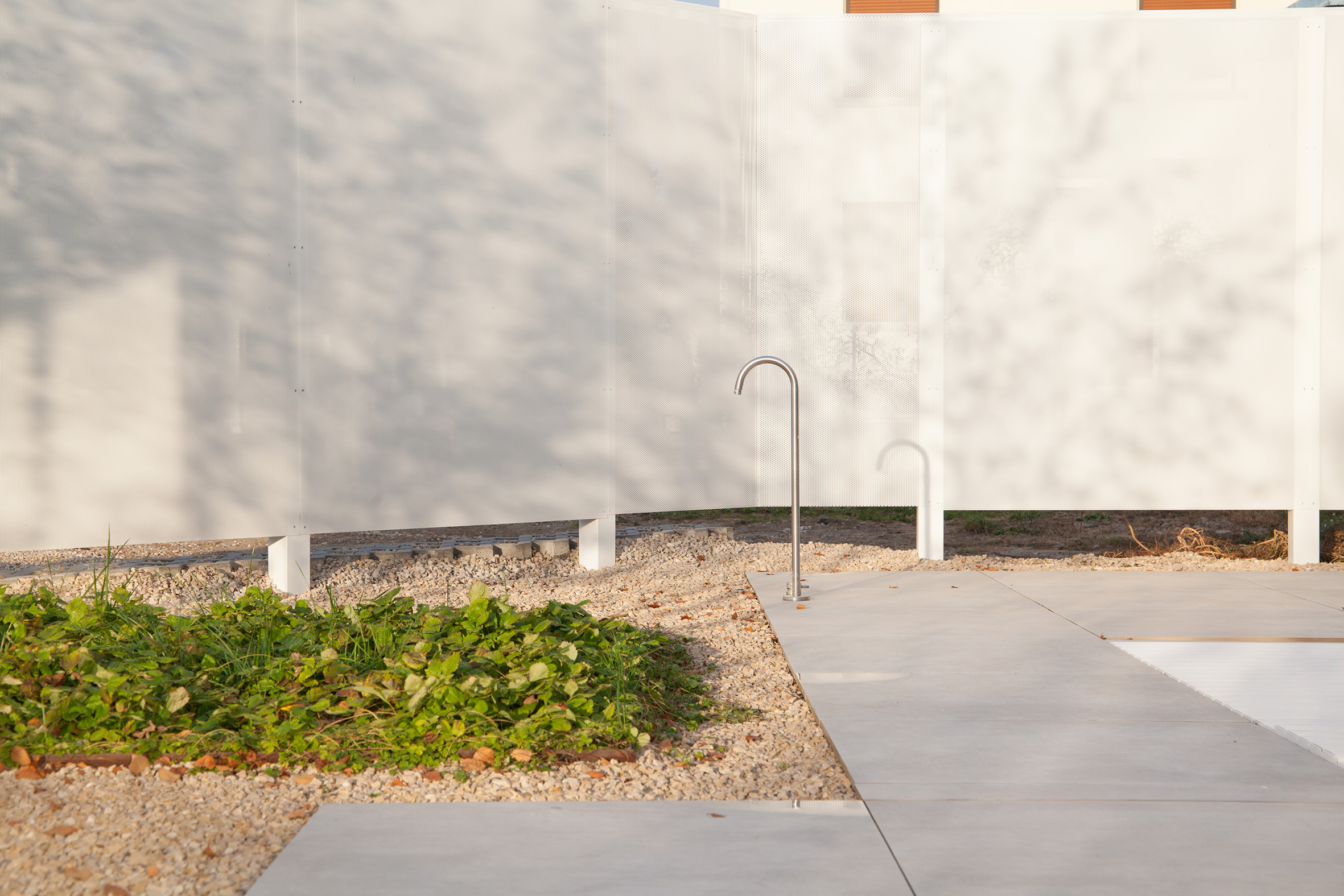 I miscelatori a parete della serie Stiriana sono stati installati nel bagno principale e nel bagno degli ospiti. I prodotti della serie Stiriana sono stati utilizzati anche nelle docce. Per la cucina è stata scelta la nuova proposta Three con doccetta esterna estraibile. Infine una canna da terra Giotto si combina perfettamente con la vasca freestanding esaltandone le sinuose forme, per poi trovare posto anche negli spazi esterni con la versione lavabo da terra.