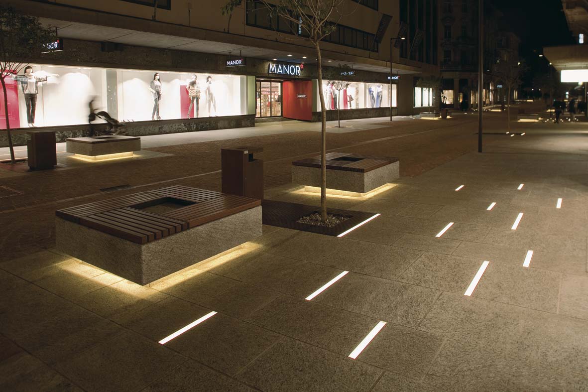 In corrispondenza degli alberi e lungo il marciapiede si è invece optato per un apparecchio lineare carrabile e modulabile, sempre in tecnologia LED, da incasso a pavimento, perfetto per creare un vero e proprio“tappeto luminoso”.