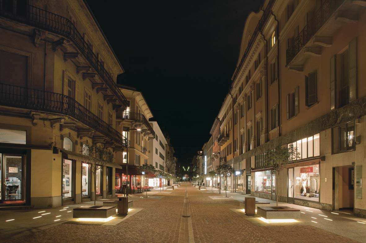 Stefano Dall’Osso e il suo team di lavoro presentano il progetto illuminotecnico creato per la parte bassa di Viale Stazione a Bellinzona. Il progetto di urban embellishment, svolto dal Dicastero Opere Pubbliche della Città di Bellinzona, consentirà alla cittadinanza di “vivere” Viale Stazione anche durante le ore serali, prolungando il piacere di frequentare lo spazio dopo il tramonto.