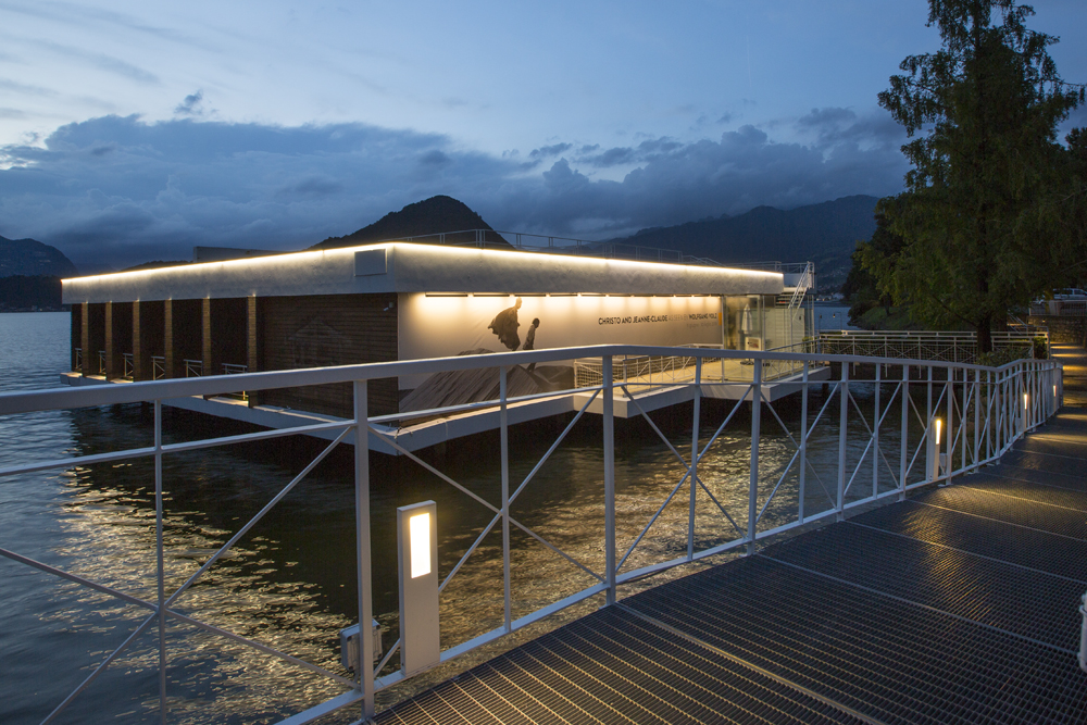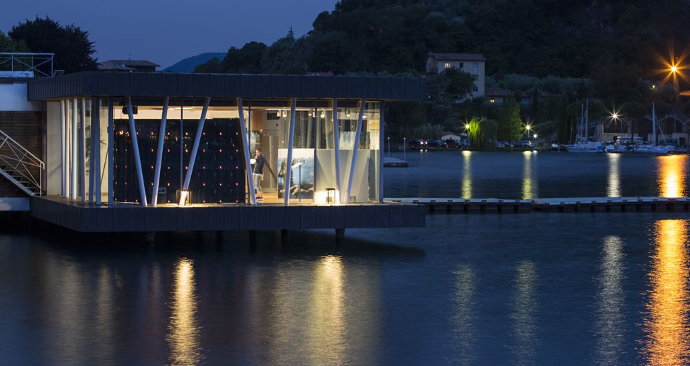 Le luci Platek sono state scelte per illuminare la magica atmosfera di questa location unica e originale, situata sulle acque del Lago d’Iseo, da cui sorge con le sue grandi vetrate che dialogano con il panorama circostante. Luogo strategico da cui ammirare l’opera The Floating Piers, l’edificio assume le connotazioni più tipiche delle architetture galleggianti sull’acqua, offrendo un punto di vista esclusivo e chiaramente metaforico.