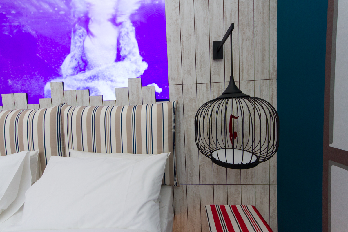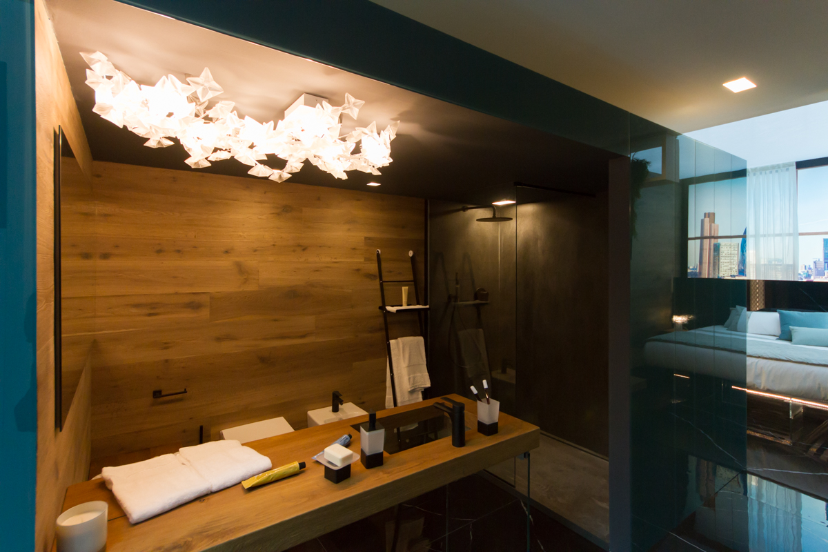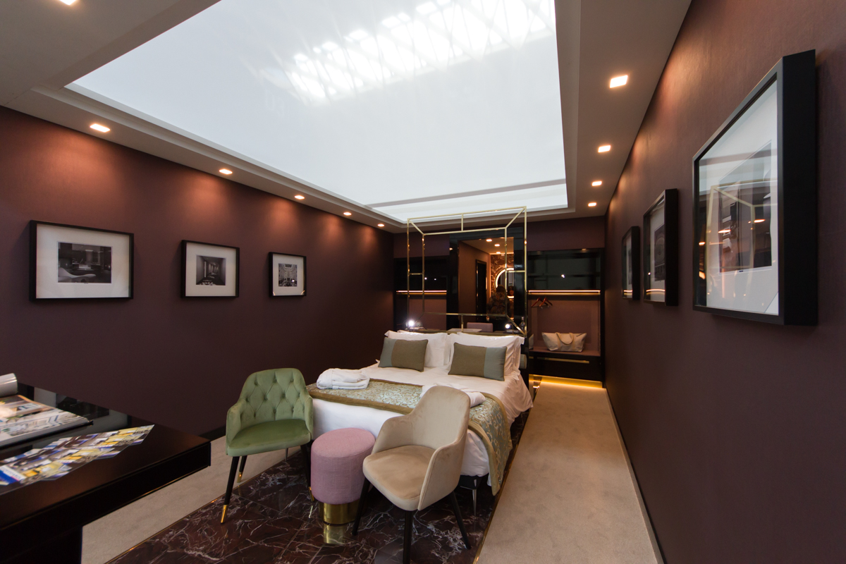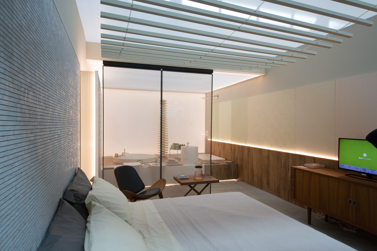 Via il superfluo, concentrando le funzionalità per rispondere alle esigenze del viaggiatore contemporaneo. Il risultato è THE BED-ROOM: una camera da letto dove al centro c’è l’uomo e il suo desiderio di dormire bene. Cuore del progetto, elaborato da Lago Studio, è il letto oversize sospeso, grande 2.40 x 2.00 m. Tutte le altre funzionalità sono racchiuse in un volume architettonico unico dalla superficie in vetro che raccoglie armadio, doccia e sanitari.
