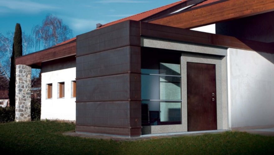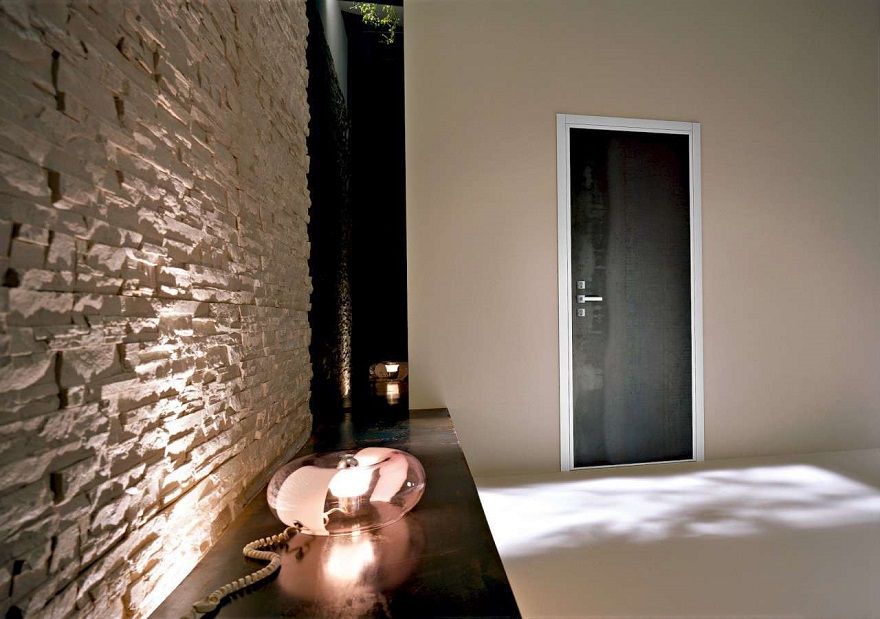 La scelta è quella di nobilitare materiali poveri e di lavoro, che acquistano nuova vita e nuovo fascino dalla fabbrica all’abitazione. Si passa dal “color ruggine” inconfondibile del Corten, l’acciaio che vive e si autoprotegge grazie alla sua naturale ossidazione, alla particolare eleganza dell’ottone brunito fino alla lamiera nera, anch’esso materiale “povero” di uso industriale che viene nobilitata nel colore e nella naturale irregolarità della superficie. Persino il cemento, nel modello Plank disegnato da Giuseppe Bavuso, diventa elemento caratterizzante dello stile della porta.