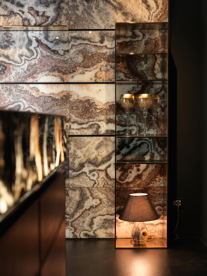 Uno stile ricercato ed elegante che veste interamente le residenze più prestigiose con un look senza precedenti: arredi progettati sartorialmente e che si illuminano di fascino. Elite Stone, infatti, propone qui numerose novità in cui l’innovativo sistema brevettato E-Light System è protagonista, creando un nuovo linguaggio per parlare di marmo. Marmi pregiatissimi, provenienti dalle cave più preziose, sono scelti personalmente da Tetyana Kovalenko, CEO di Elite Stone; non solo zona giorno, zona notte e ambiente bagno, ma anche una rivoluzionaria e raffinata interpretazione del living che si colora di toni caldi e glamour: nasce così la meravigliosa area Coral Black, frutto di un’equilibrata ricerca tra tecnologia, materiali, stile e amore per il lusso bespoke tutto da vivere.