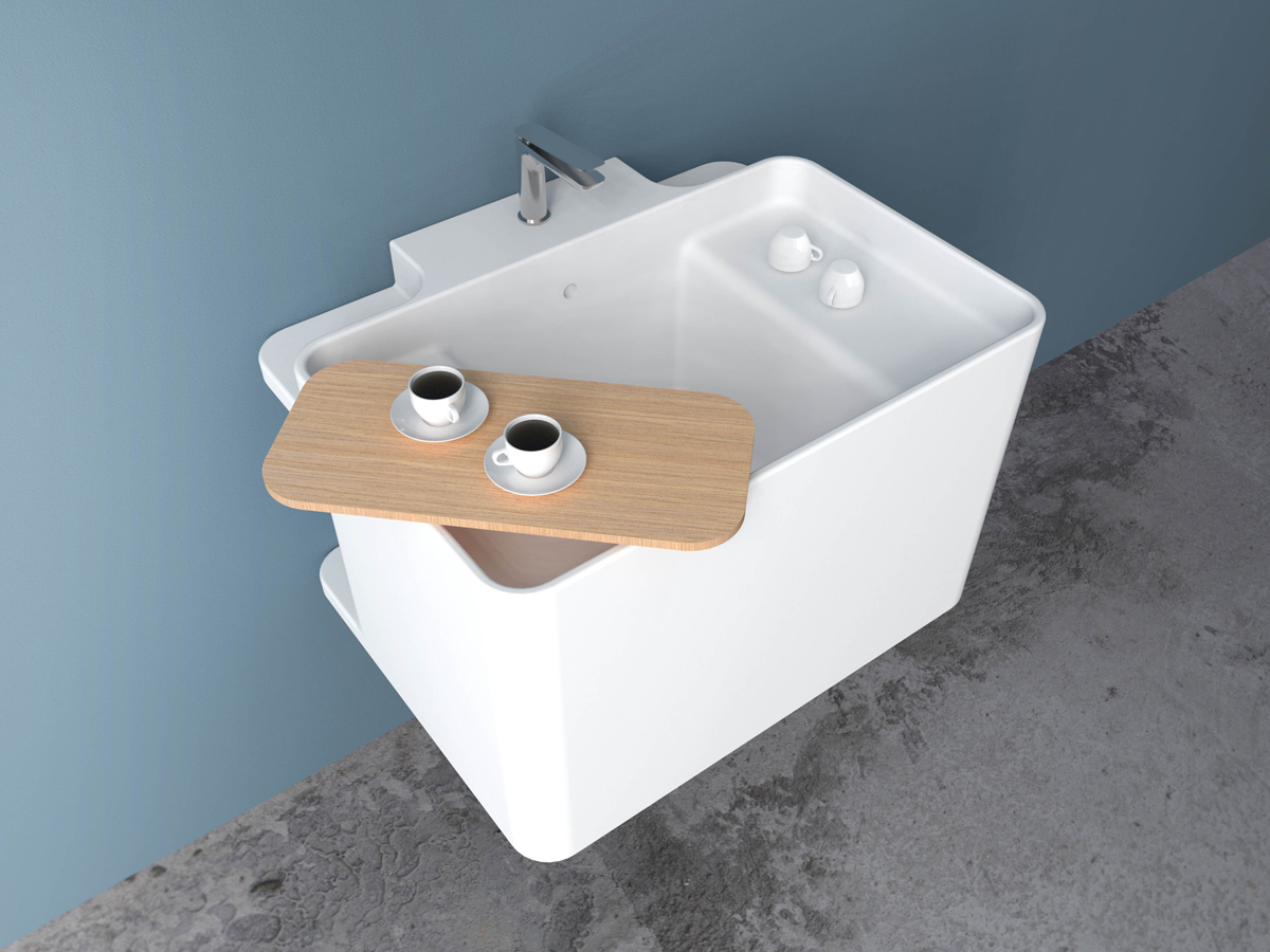 Nato da un’idea di Matteo Ragni, da sempre sostenitore di un design che tenga realmente conto della vita reale, Anfibio è la risposta alle necessità quotidiane di utilizzo del lavabo che si ampliano, seguendo nuovi stili di vita.