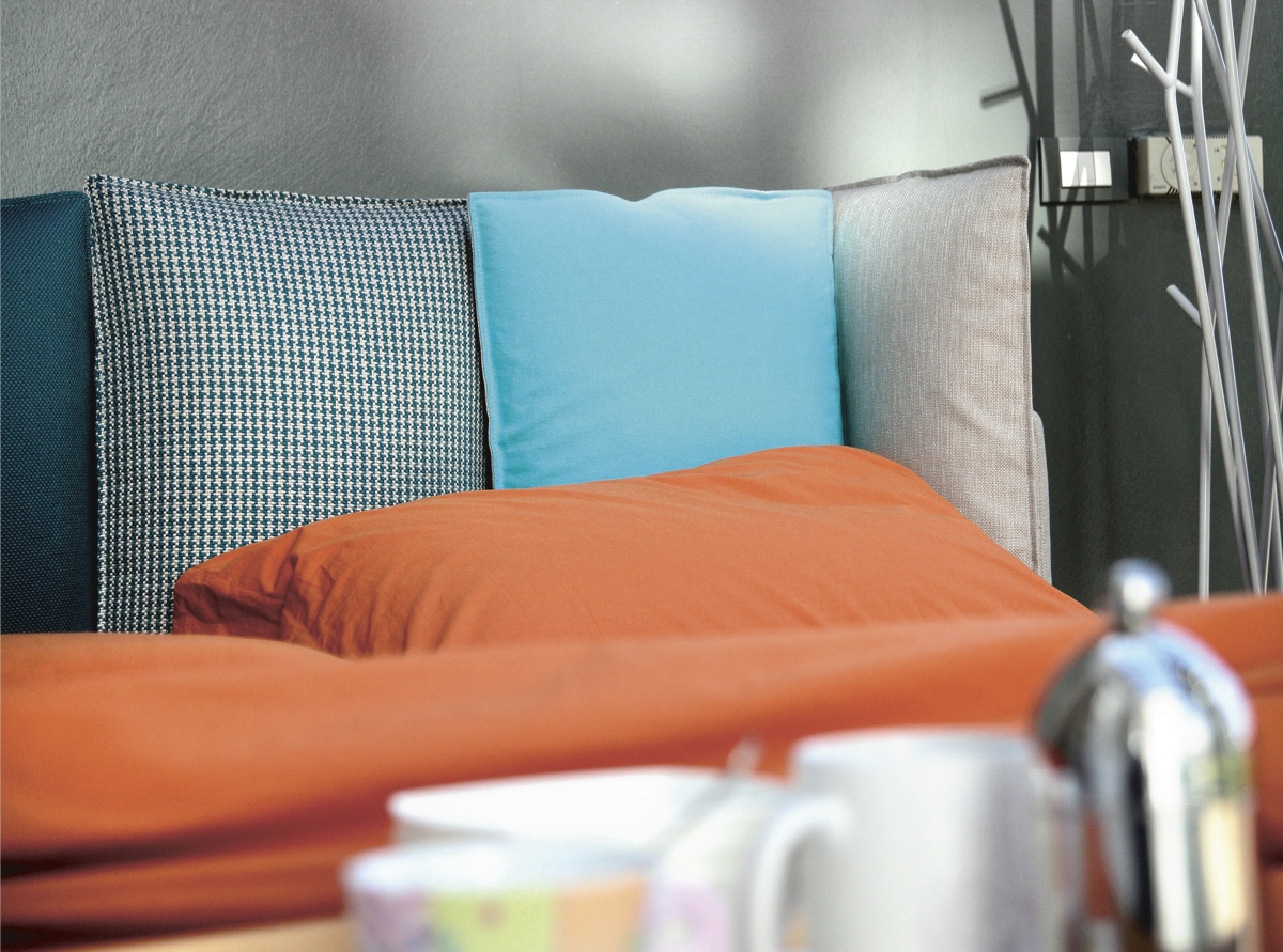Birdland è pensato per offrire un modo diverso di concepire il relax: accogliente e dal design pulito, regala la sensazione di addormentarsi avvolti da morbidi cuscini. Grazie, infatti, alla sua originale testata formata da 6 morbidi cuscini rimovibili, tutti avranno la possibilità di scegliere – oltre alla tinta unita nei vari tessuti del campionario Noctis – tra 7 versioni speciali “Inspiration”. In queste, il giroletto, la struttura della testata e il retro di ogni cuscino sono proposti di serie in tessuto Rimini, mentre il frontale dei cuscini è realizzato in diversi abbinamenti cromatici dei tessuti Riccione, Maratea, Cervia, Brando e Bellaria. Giocando quindi con il verso e la posizione di ogni cuscino, si potrà ottenere un letto unico, esclusivo e divertente, che rispecchi la personalità e l’immaginazione di ognuno.