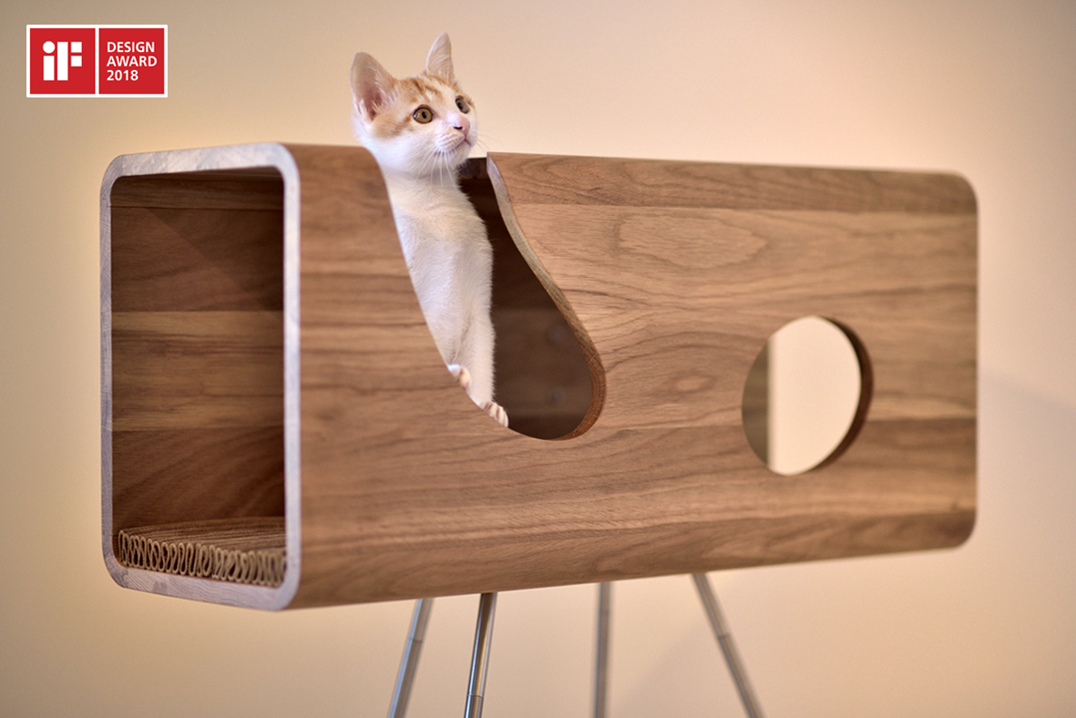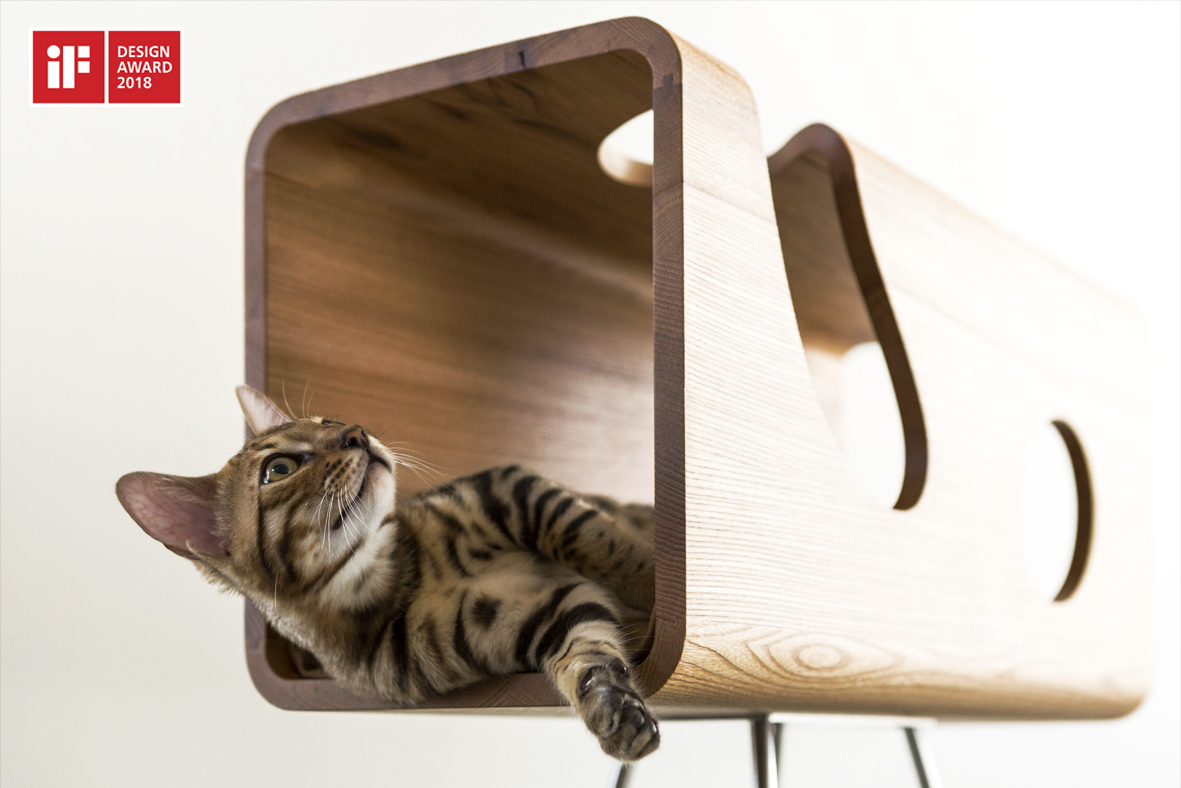CAT60, una cuccia per gatti realizzata con legni pregiati e Ispirata al design degli anni 60, è stata selezionata da una giuria di 63 membri, esperti independenti, arrivati da tutto il mondo. Selezionata per la sua innovazione, funzionalità, qualità costruttiva ed aspetto emotivo.