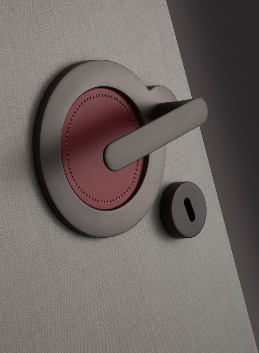 Saturn è una rosetta dalle dimensioni importanti, larga 180 mm e alta 152 mm, che prende spazio e visibilità sulla porta, diventando elemento qualificante e caratterizzante. Il suo disco interno, del diametro di 103 mm, oltre ad essere disponibile in varie finiture e rivestimenti, può essere personalizzato attraverso l’incisione a laser di una frase, un logo, un marchio. Il disco interno può essere inoltre facilmente sostituito e acquistato anche singolarmente, divenendo quindi un elemento che si può rinnovare nel tempo.