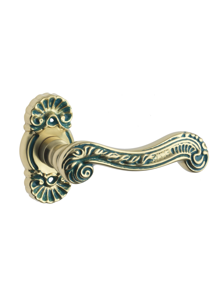 Maniglie Manital, modello Victoria, un modello che richiama le linee dello stile vittoriano, arricchita da preziosi intarsi e da motivi ornamentali