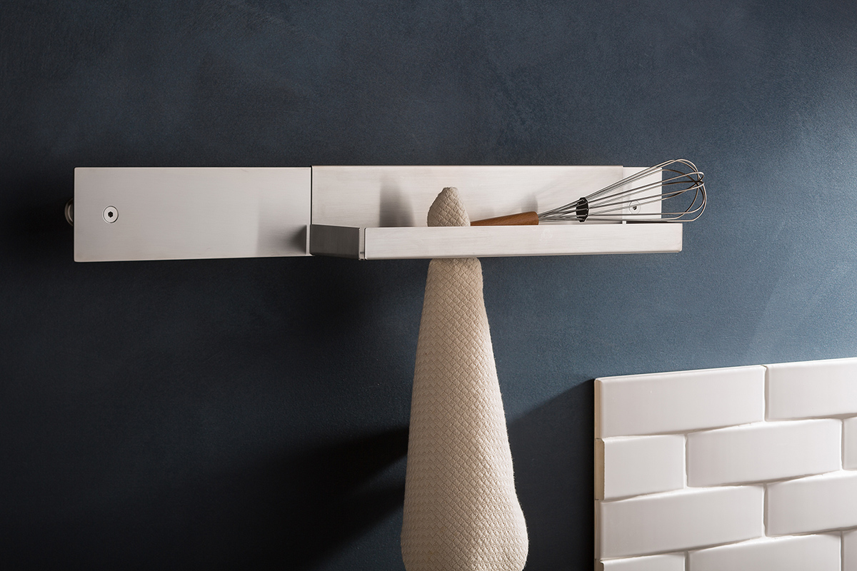 Da guardare con quel pizzico di meraviglia che rilegge gli oggetti quotidiani in chiave evocativa: seguendo il profilo disegnato della gruccia, le curve geometriche di un “cactus” che diventa appendiabiti, e immaginando le lunghe linee parallele delle barre, interrotte da contenitori di oggetti e di idee per la massima libertà di utilizzo.