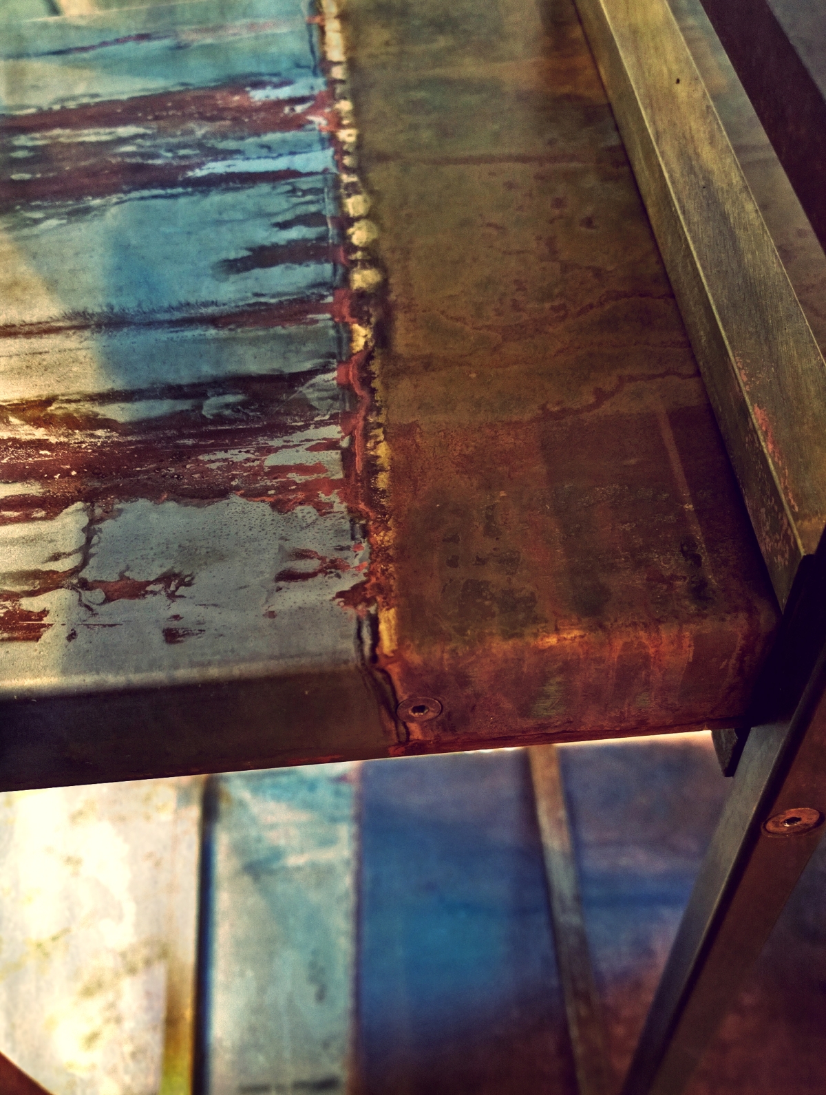 I trattamenti organici realizzati sulle opere, sono frutto di molti anni di sperimentazione. Il metallo è materia strutturale, utilizzata per costruire forme essenziali e funzionali, scarne di qualsiasi eccesso costruttivo, fedeli al proprio ruolo.