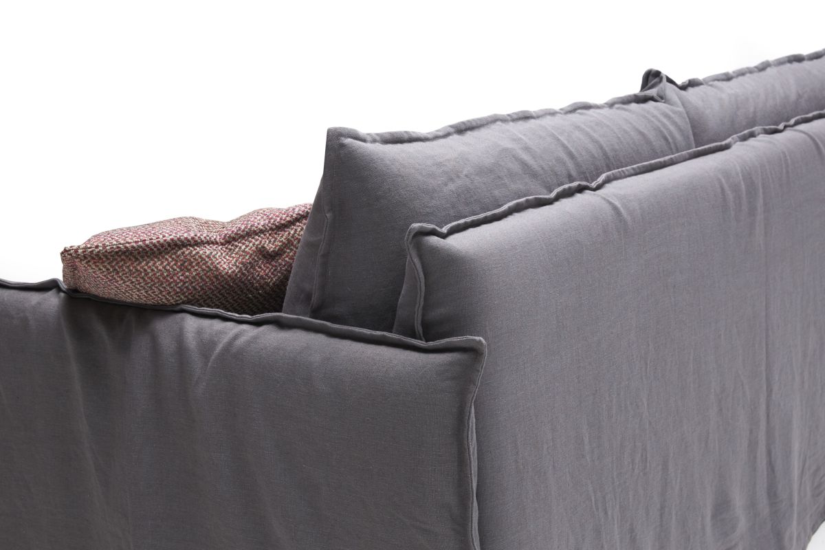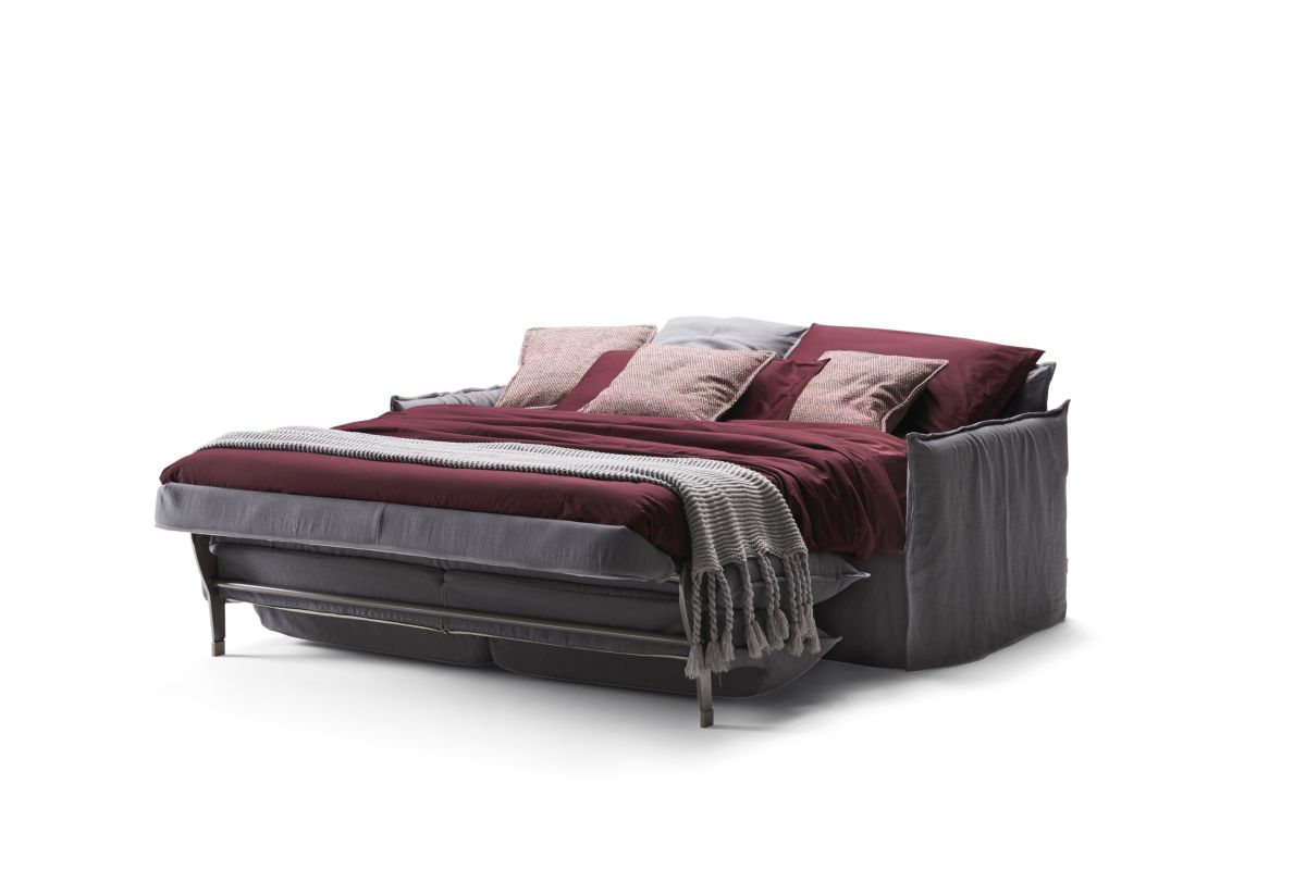 Con una semplice e veloce rotazione dello schienale, senza la rimozione di alcun cuscino, Clarke si trasforma in un letto matrimoniale con materasso lungo 200 cm e disponibile in tre spessori: 14, 18 e 22 cm. Il rivestimento è completamente sfoderabile e lavabile a seconda del tessuto scelto.