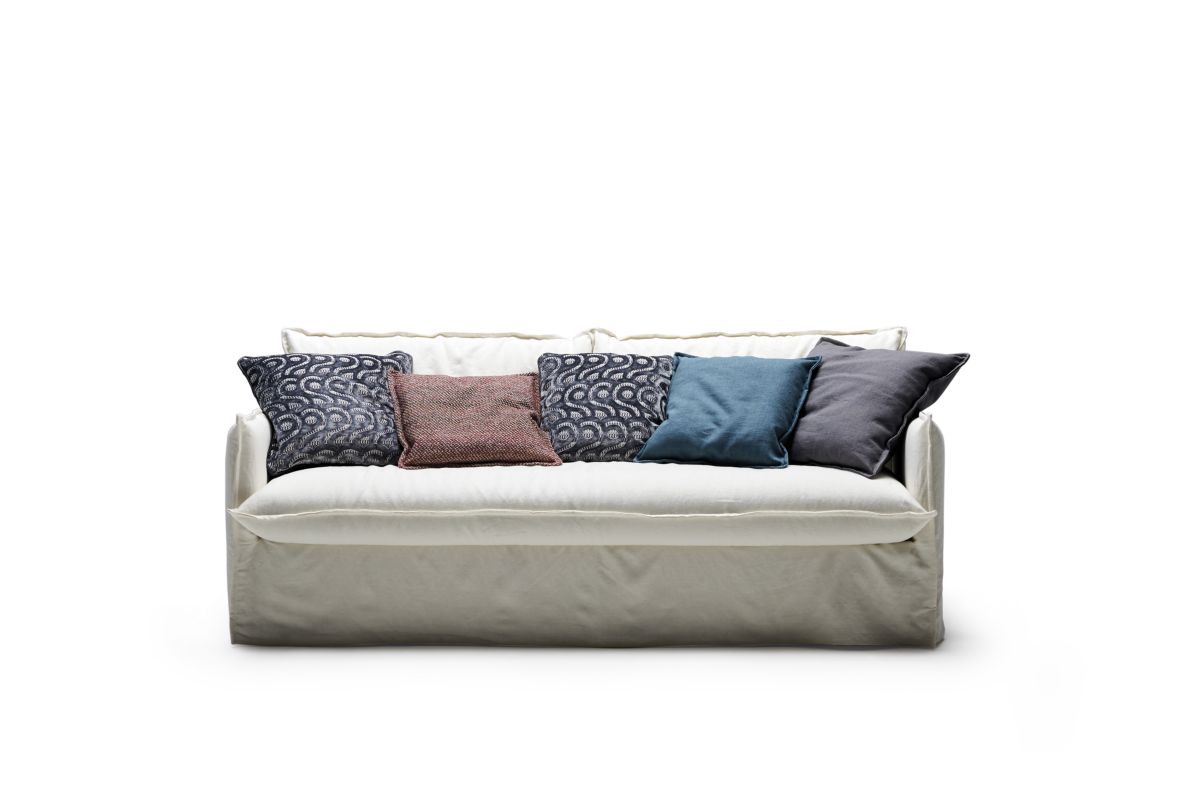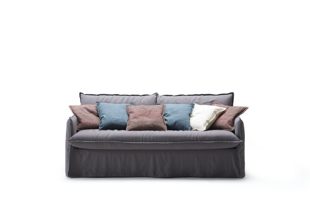 Il divano letto Clarke, la novità presentata quest’anno al salone, aggiunge alla qualità costruttiva un design informale dall’aspetto vissuto e shabby chic.