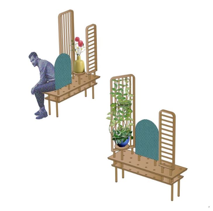 La modularità e versatilità di Etta ne fa un arredo estremamente versatile, in grado di funzionare sia come seduta, che come elemento divisorio, ma anche come strumento d’appoggio per piante ed altri oggetti.