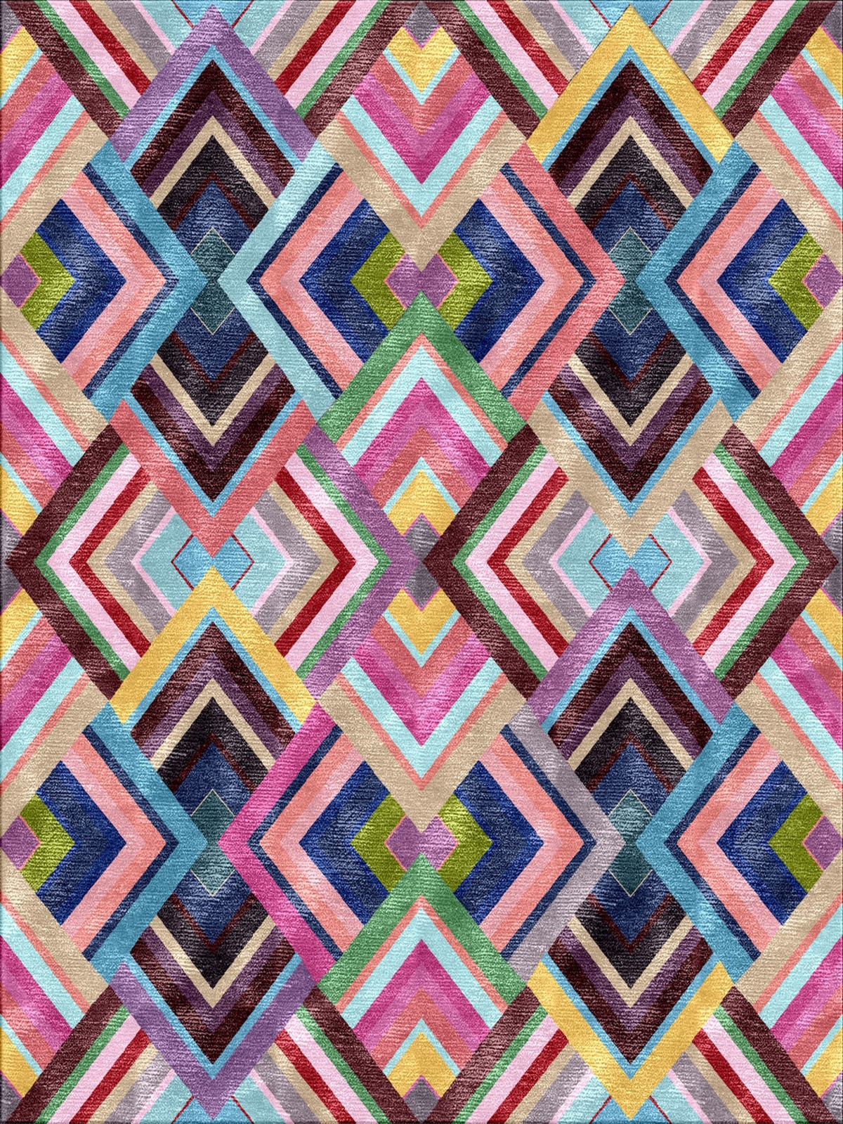 L’armoniosa intersezione di rombi e un sapiente abbinamento di cromie sono la cifra distintiva di Woodstock, un richiamo simbolico all’omonimo festival, uno tra gli eventi più influenti sulla cultura popolare della seconda metà del XX secolo. Annodato a mano secondo le più antiche tecniche artigianali, Woodstock è realizzato in seta purissima con colori vegetali.