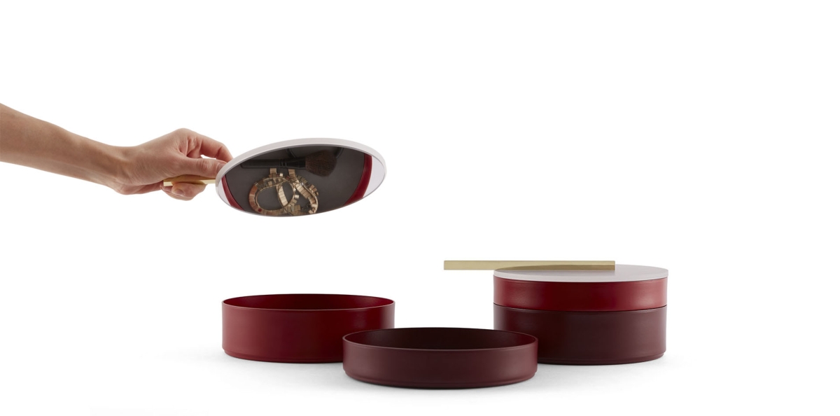 Dama, il nuovo progetto Incipit firmato dal duo Federica Biasi e Simone Bonnani, si presenta come un versatile sistema di contenitori impilabili cilindrici di diverse altezze e colori, pronto a caratterizzare differenti ambienti dell’abitare domestico: uno svuotatasche in soggiorno, un porta penne ed accessori su una scrivania nell’angolo studio, gioielli e makeup in camera da letto.