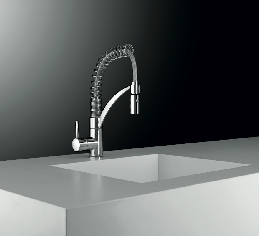 Le soluzioni progettate dall’azienda, fondata su valori eco-compatibili ed eco-sostenibili, sono molteplici; eppure la già vasta gamma continua ad arricchirsi di ulteriori proposte, che ridefiniscono il concept dell’ambiente cucina. Tra le opzioni, ad esempio, il monocomando lavello con bocca girevole e doccia 2 getti della serie Spring, il miscelatore lavello Oval con doccia estraibile, i numerosi miscelatori a parete, ed ancora i monocomandi Under window, con bocca girevole e corpo estraibile sottofinestra.