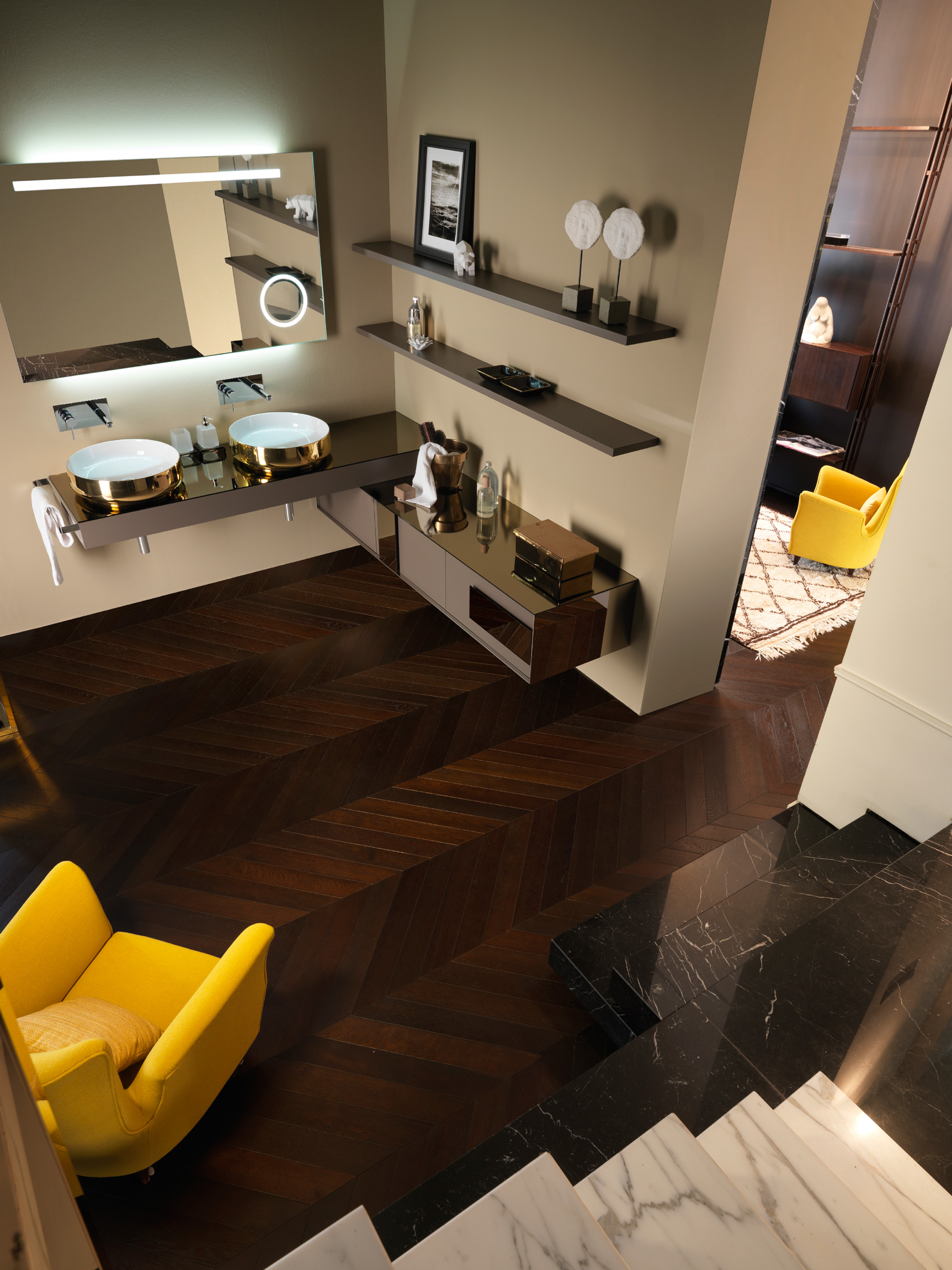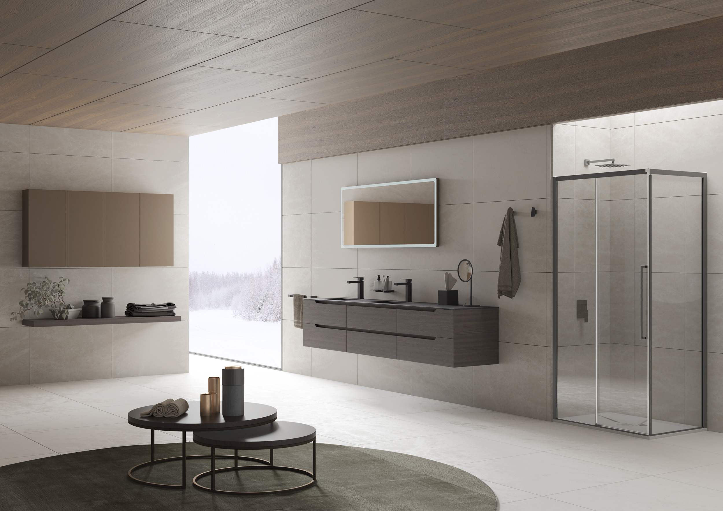 Novità mobili 2018 è Sistema 45, che comprende Logico, Acuto e Prestige, soluzioni d’arredo dinamiche dall’approccio progettuale modulabile, ispirate al mondo cucina e che quest’anno presentano un taglio a 45° dell’anta. La vocazione per la ricerca e l’innovazione costante si mostra anche in Leonardo, gamma di piani con lavabo integrato dello spessore di 12 cm, che presentano la tecnologia HPL e si decorano di 10 finiture dall’effetto materico: dal similmarmo al legno, dal cemento al porfido. Oltre ad una rivisitazione della palette cromatica di 36 colori, sono disponibili 20 laminati per l’intera collezione mobili che si veste ancora di più di fascino unico e coinvolgente. Il total look non si ferma solo ai mobili, Inda sorprende ancora una volta ampliando la già ricca divisione specchi, proponendo Quattro+, specchio contenitore ad incasso dotato di superficie riflettente interno/esterno, luce dimmerabile, casse e Bluetooth, per una massima fruibilità non solo estetica ma anche tecnologica.