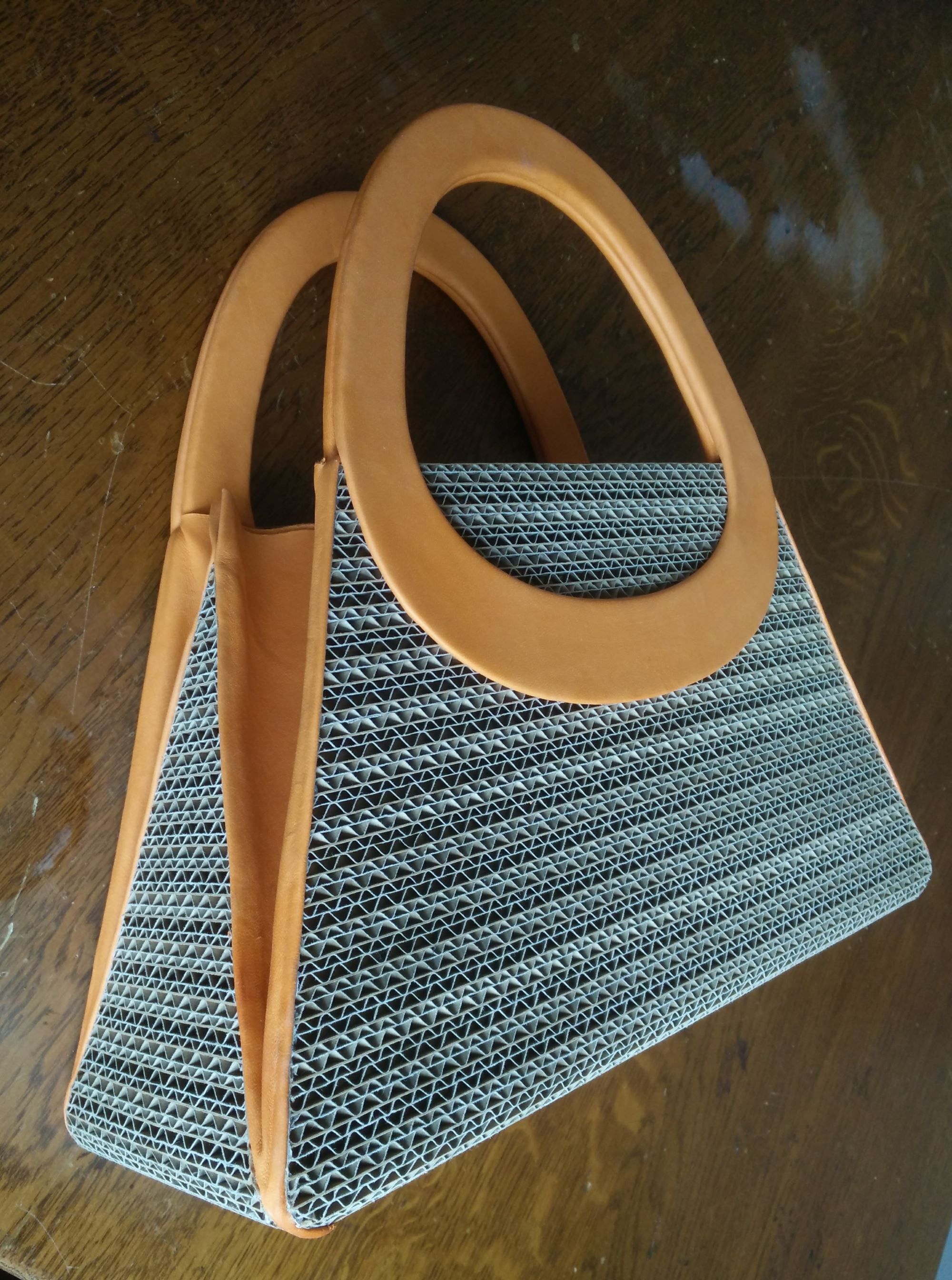 Praticità ed eleganza: sono questi i due principi a cui l’artista rimane fedele durante le fasi di progettazione e di realizzazione. Ciascun oggetto, infatti, per essere tale deve necessariamente mantenere le sue peculiarità in sede di utilizzo. Borse e accessori dovranno, pertanto, continuare ad essere comodi e morbidi; gli oggetti di arredamento essere necessariamente robusti. Per fare ciò la pratica seguita dall’artista è quella di sezionare il cartone in un’infinità di listarelle aventi uno spessore tra i 7 e i 5 mm che, ruotandole di 90°, vengono accostate une alle altre andando lentamente a comporre la fisionomia dell’oggetto.