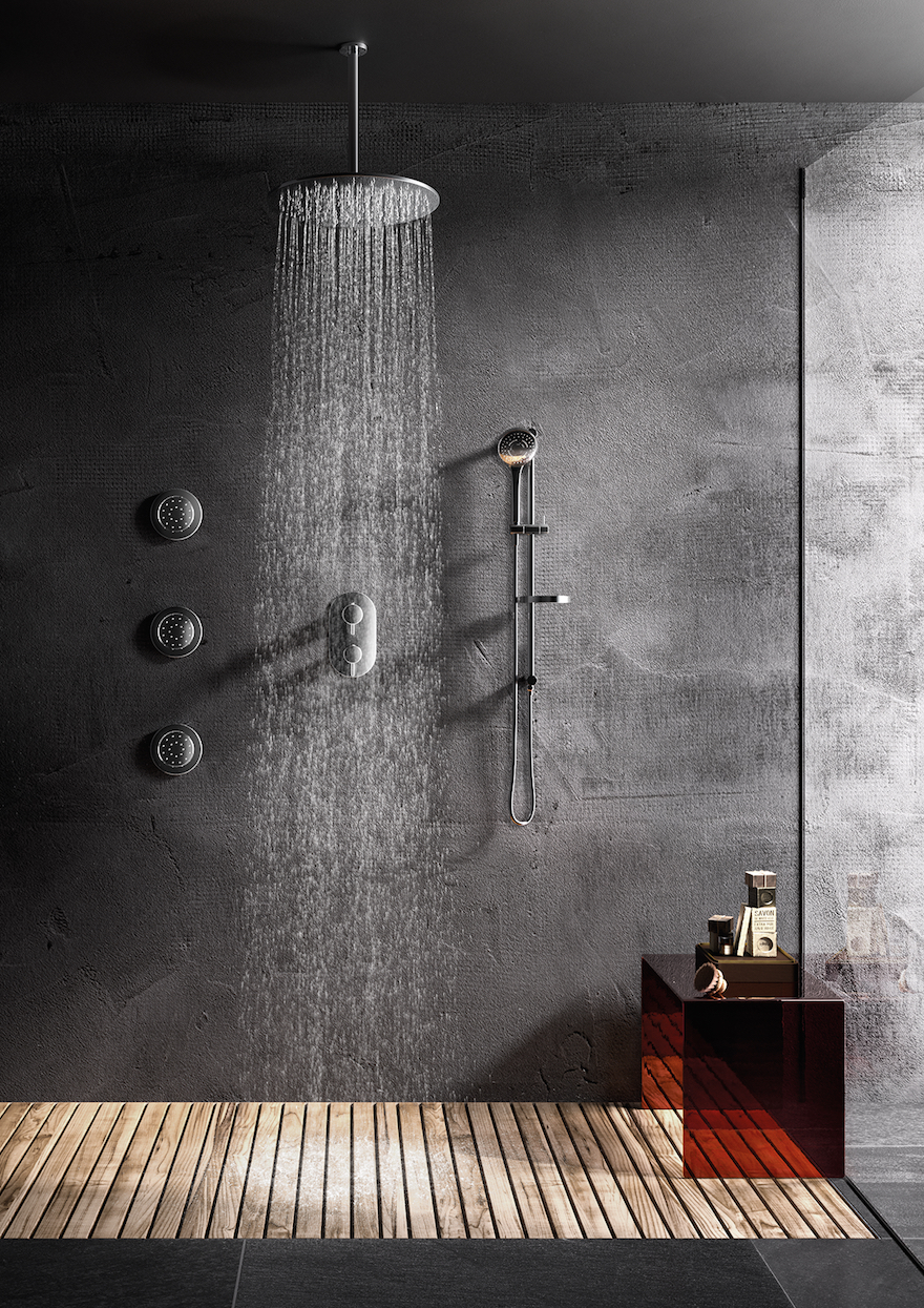 Tra le proposte che mirano a valorizzare con stile le sensazioni di rilassamento e distensione nello spazio doccia, si distinguono, ad esempio, i soffioni di design caratterizzati da diverse forme, dalle più geometriche e lineari, alle più plastiche ed evocative del mondo vegetale. Inoltre continua ad arricchirsi la gamma di soffioni in acciaio inox dai volumi essenziali e dotati di getti a cascata, anche nella suggestiva versione ad incasso e dei double jet, a parete ed a soffitto, che offrono la possibilità oltre che di selezionare lo zampillo ideale, a pioggia o a cascata, di scegliere tra numerosi profili e dimensioni.