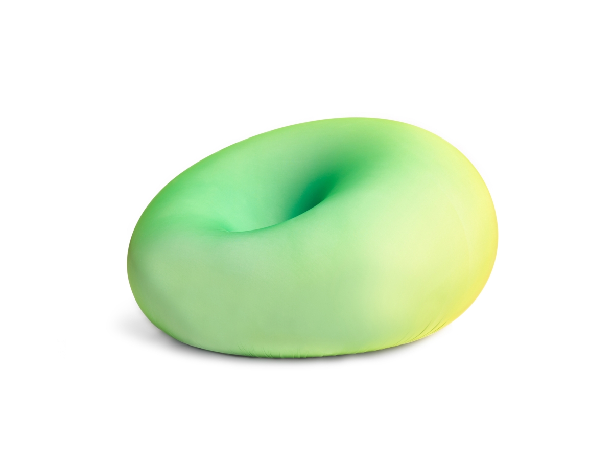 Detecma rinnega qualsiasi definizione formale, una poltrona seduta a terra un po’ pouf, un po’ chaise longue che dà vita a un’immagine antesignana di un modo di intendere l’abitare e il progetto d’arredamento che diventerà un fenomeno di massa solo alcune decadi più tardi. Detecma è un progetto che nel 2014 torna con una connotazione di attualità disarmante: la formula matematica parametrica “open source” tratta dal Ciclide di Dupin da cui è generata e i colori gradienti che coprono l’intero spettro cromatico in una celebrazione esplosiva di tonalità piene e nuances perfettamente sfumate. Sei versioni che messe insieme restituiscono tutte le tonalità del mondo.
