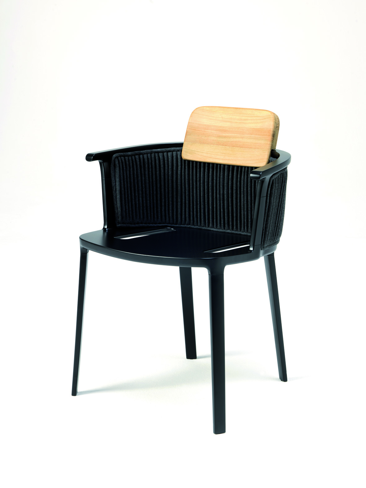 Allo schienale, si unisce infine un elemento in teak, che contribuisce a rendere ancora più ‘calda’ e confortevole la seduta.