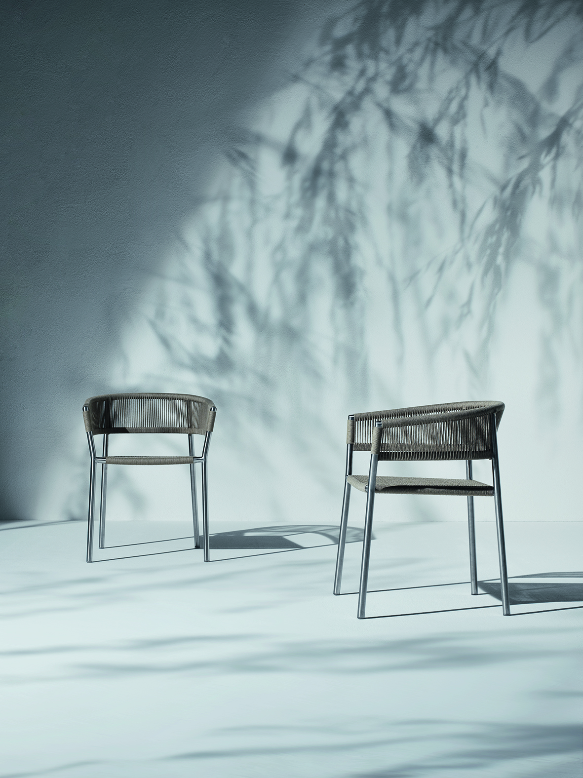 Kilt, con struttura in acciaio inossidabile, è impilabile e soddisfa tutte le esigenze di comfort: l’utilizzo di una fitta trama di corda tesa a formare lo schienale e la seduta, assicura la necessaria comodità e al tempo stesso la resistenza agli agenti atmosferici.