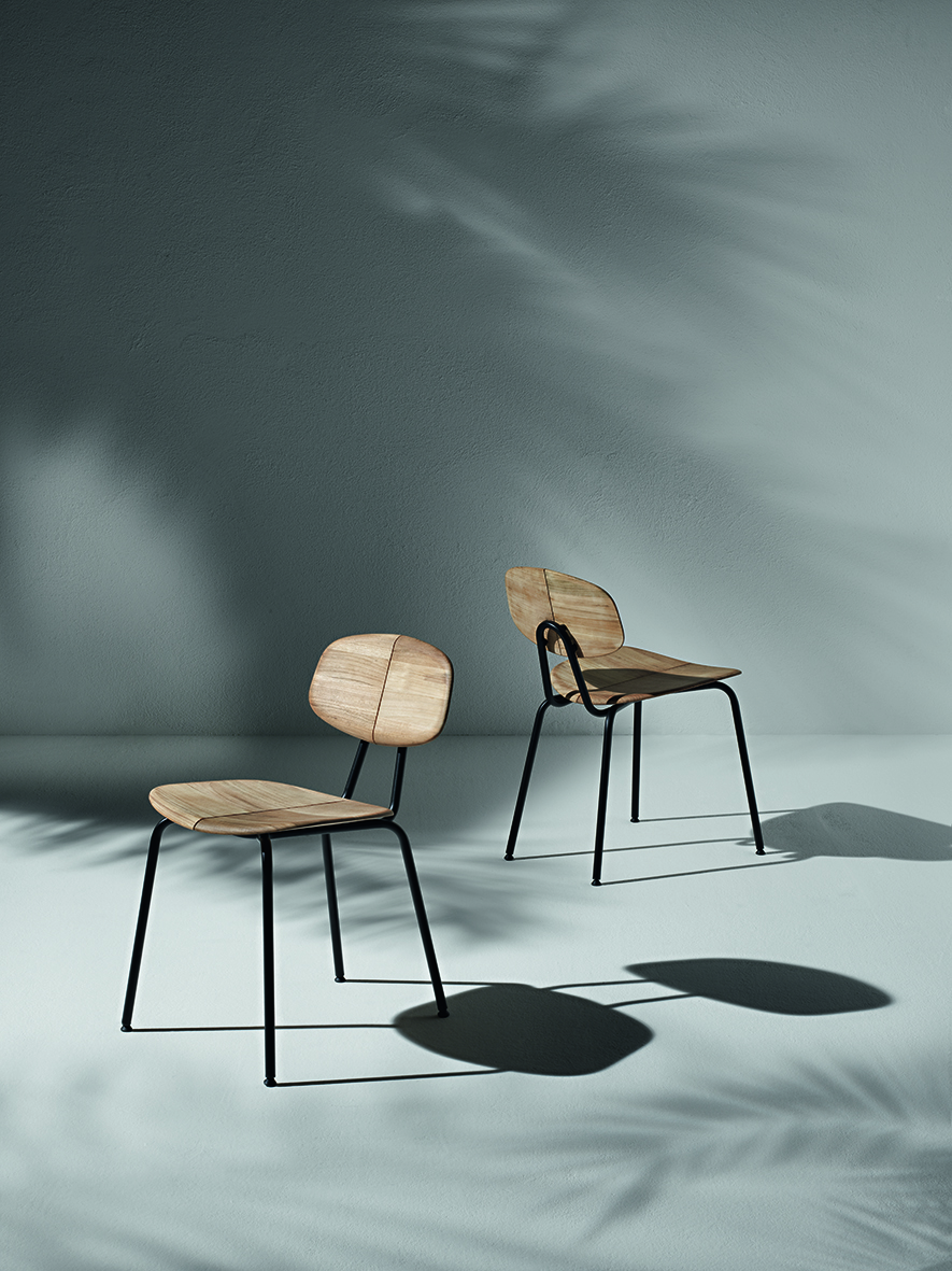 Nella sua nuova versione, Stitch unisce la leggerezza della struttura metallica al ‘calore’ delle doghe in teak naturale. Il risultato è una seduta dal look contemporaneo che fa del contrasto tra i materiali l’elemento protagonista del suo design.