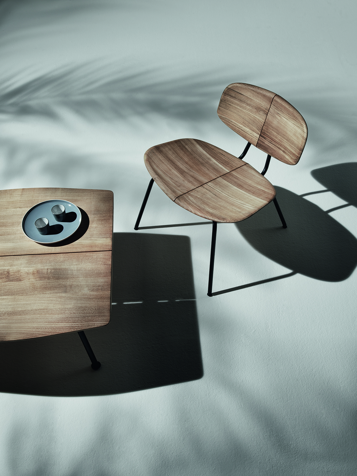 Il teak massello, che compone gli elementi della famiglia, viene lavorato da Ethimo con un’eccezionale cura artigianale, al punto da ricreare i movimenti morbidi, i profili sottili e la superficie setosa dell’agave. Inoltre, come le foglie lasciano scivolare l’acqua, così il progetto di Mattia Albicini è dotato di un sottile incavo posto in corrispondenza della linea di simmetria che funge da sistema di drenaggio, ma anche da elegante dettaglio decorativo.