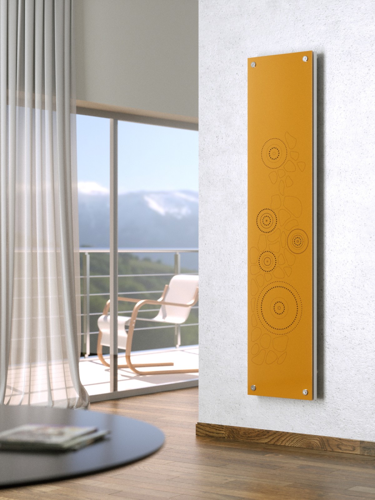 Il radiatore è disponibile in un’unica dimensione di 1800x400mm, in versione idraulica, elettrica e mista. E’ corredato di valvola, detentore e allacci idraulici interni, che vengono nascosti dalla lastra di rivestimento per un effetto estetico pulito e minimale.