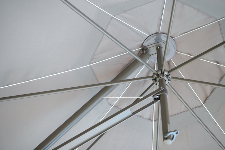 La raffinatezza moderna del suo design si sposa armoniosamente con le nuance sobrie dell’ecrù o del tortora tra cui è possibile scegliere, mentre l’ampia apertura in poliestere di 3 metri e 50 centimetri che garantisce una confortevole oasi d’ombra in giardino, sul terrazzo o a bordo piscina, ne valorizza l’aspetto pratico. Inoltre, ad ulteriore valorizzazione della praticità, il fusto in alluminio ruota all’interno della base permettendo di orientare l’ombrellone a seconda delle esigenze.