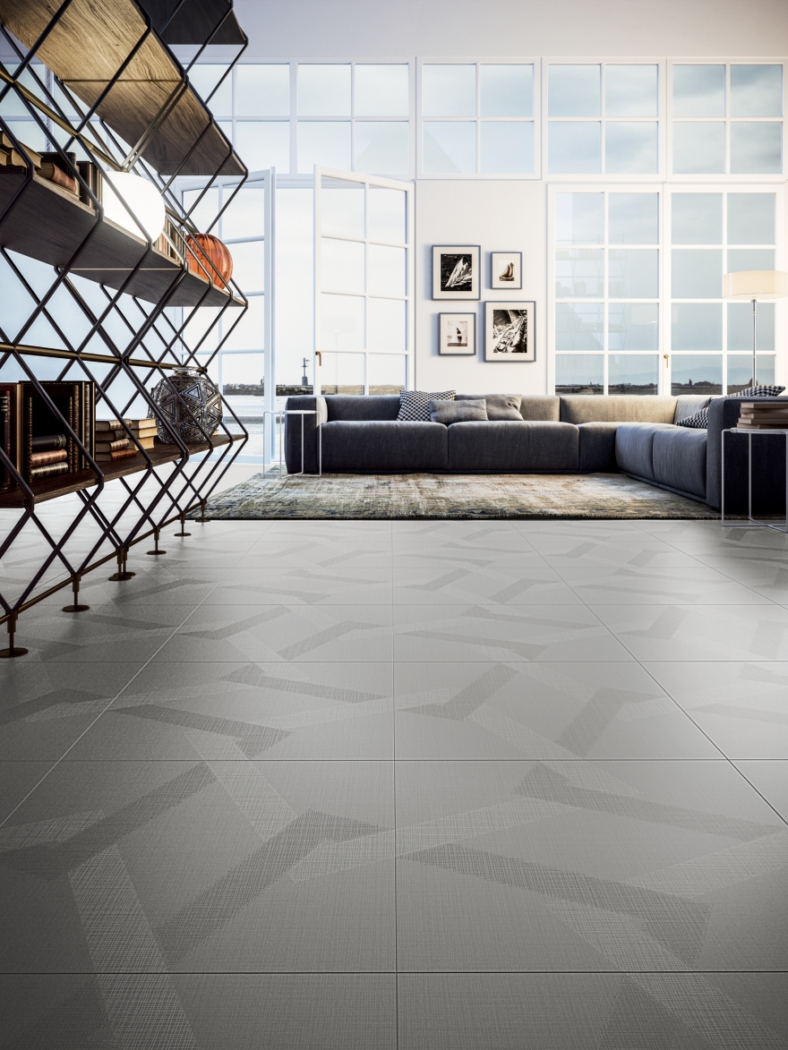 Anche la variante Mirror si sviluppa in tre linee cromatiche denominate Silver, Ash e Sand. Il risultato in questo caso è un effetto di profondità esaltato da una trama grafica che si ispira al mondo del tessile.