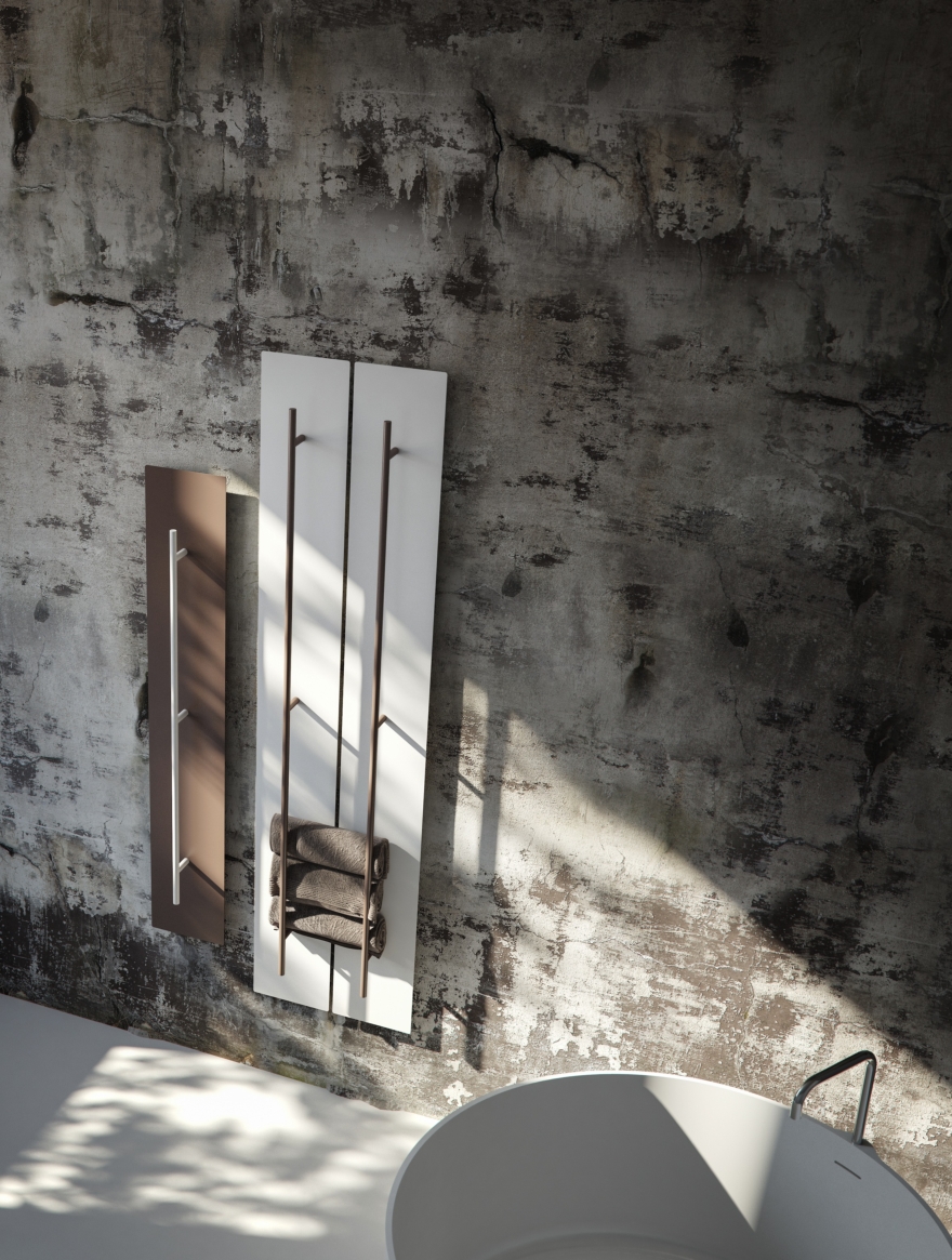 L’azienda ha infatti introdotto le regole per una completa personalizzazione di Teso: il sottile braccio ancorato alla piastra in alluminio, sul quale appendere asciugamani, accappatoi o soprabiti se installato in prossimità dell’ingresso, può ora essere richiesto in una gamma di oltre 200 varianti colore. Optare per un deciso contrasto, giocare al contrario su un leggero gioco di sfumature oppure ordinare il termoarredo in versione monocromatica per un effetto minimale è una decisione sulla quale il cliente interviene direttamente.