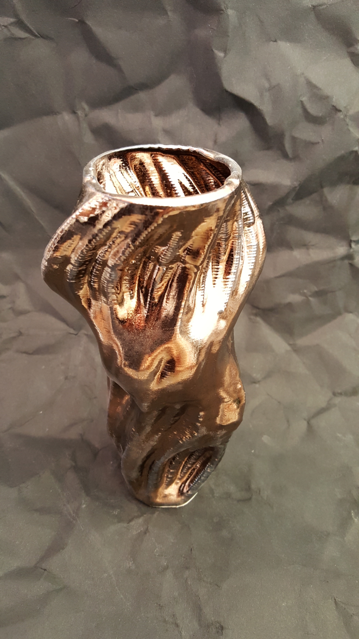 Realizzata tramite sinterizzazione a laser diretta su alluminio, con finitura metallizzata UV e dotata di lampadina a LED, ha una forma movimentata, ma si distingue per essere statica, come una scultura.