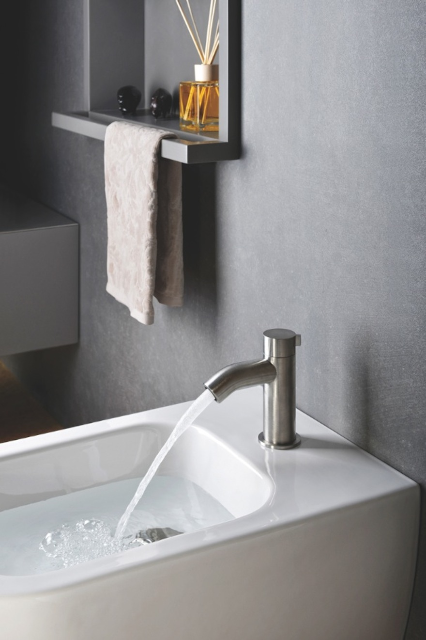 Realizzato in acciaio AISI 316, iX è disponibile in due versioni: miscelatore tradizionale a leva con cartuccia classica e, novità assoluta, miscelatore con maniglia rotativa. Quest’ultima, concepita con un occhio di riguardo verso il mercato statunitense, aggiunge al risparmio idrico un ulteriore risparmio energetico grazie al rivoluzionario sistema progressivo. Aprendo il rubinetto sull’acqua fredda, la rotazione permette una graduale miscelazione, fino ad ottenere l’acqua calda con uno spin di 180° dalla posizione iniziale. Un semplice “mezzo giro” per regolare la temperatura dell’acqua con estrema precisione, in un sistema affidabile e rapido.