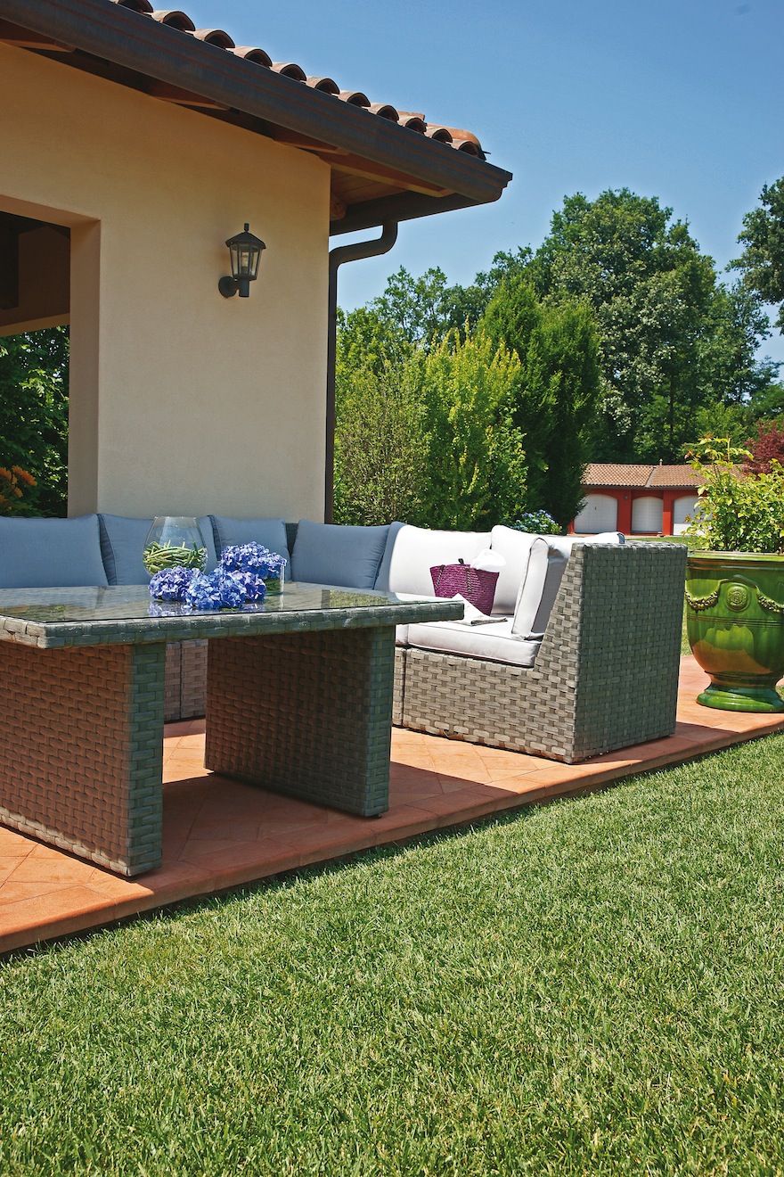Infatti, l’elegante salotto in wicker intrecciato, con le sue accoglienti sedute ed i morbidi cuscini, è ideale per i momenti di relax e di convivialità, assicurando il massimo comfort. Inoltre, al posto del classico tavolino da appoggio, Greenwood propone il tavolo con piano in vetro temperato, così all’occorrenza il salotto può trasformarsi in un comodo set per un pranzo all’aria aperta e per spuntini fuori-pasto in totale comodità.