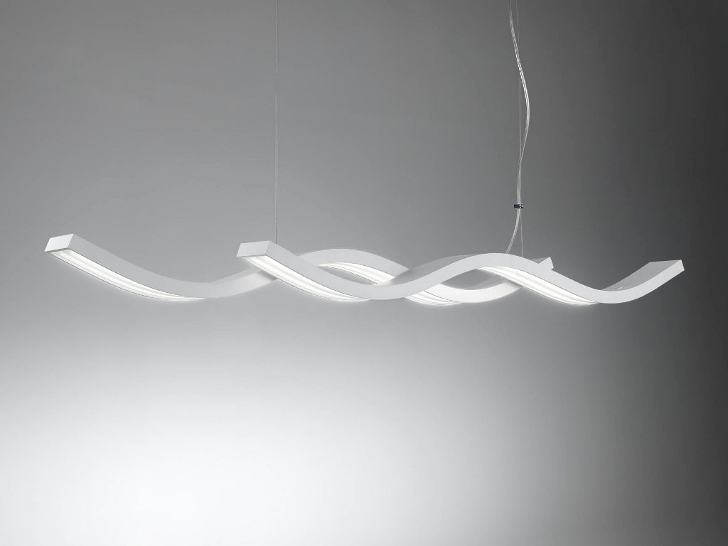 Ispirata alle onde della laguna di Venezia, la famiglia di lampade LED Swing si arricchisce con una nuova sospensione da 1,55 metri. Luce calda, con 72W ha una resa molto potente, ben 6600 lumen. Il diffusore ha un elegante e inconfondibile pattern a righe che abbellisce la lampada rendendola un piacevole oggetto di design anche a luce spenta. Swing è formata da tre moduli da 1 metro che possono espandersi senza confini, ideale anche per creare progetti di ampio respiro.