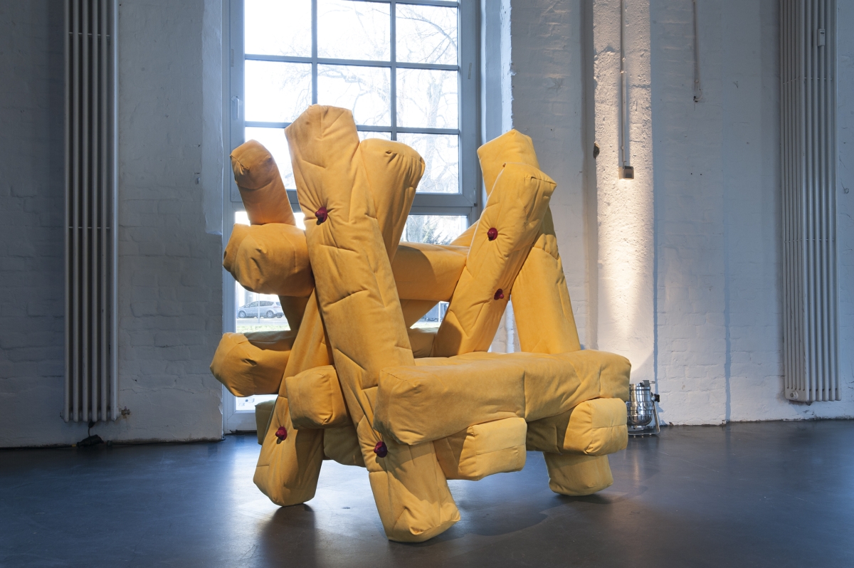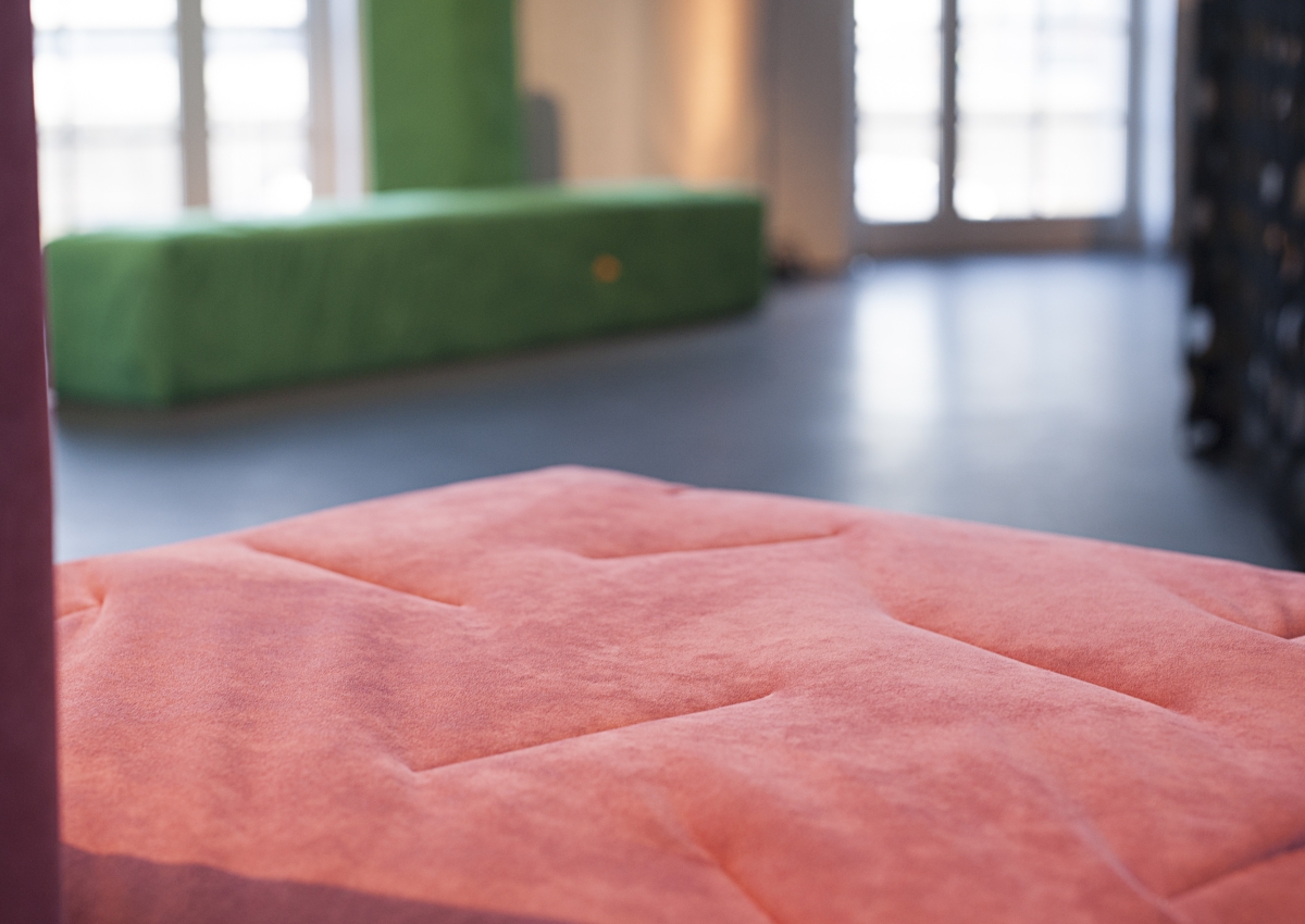Infine l’artista cileno-svedese Anton Alvarez per l’opera New Skids on the Block gioca con la variegata palette colori di Alcantara® per ideare originali complementi d’arredo. Composti da soffici bastoni che presentano una struttura in legno ed alluminio rivestita in schiumato e completata da morbida Alcantara®, gli elementi, di dimensione umana, sembrano “vivi”, come corpi che lottano o che si aggrappano l’uno all’altro.