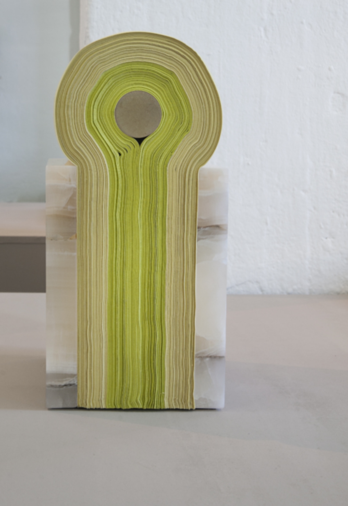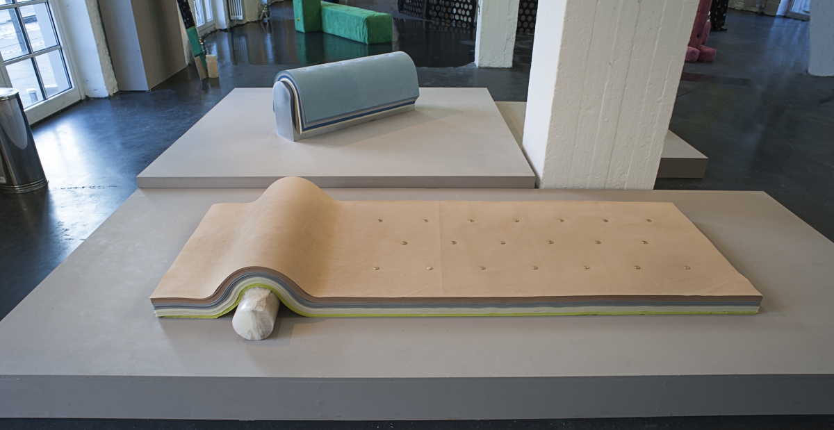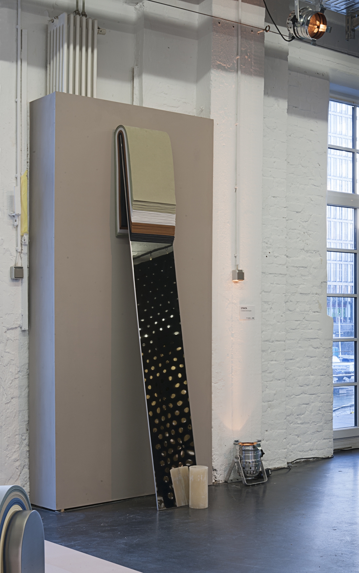 Dalla Fiera alla Kunsthaus Rhenania, dove il duo italiano Formafantasma con il progetto Strata pone l’accento sulla versatilità e sui punti di forza di Alcantara®, arrivando a ideare una serie di semplici elementi che suggeriscono diverse applicazioni per il materiale, enfatizzandone il contrasto con altri elementi naturali come marmo, metallo e pietra. Utilizzato come cintura per tenere insieme alcuni pezzi pesanti, Alcantara® dà prova di una forza straordinaria.