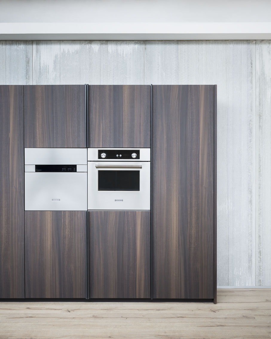 Innovativo ed estremamente funzionale è il nuovo maniglione dal profilo semicircolare, che si sviluppa a tutt’altezza; la sua struttura garantisce così una presa ergonomica, ingentilendo al contempo il profilo dell’anta. Una soluzione importante e di forte impatto è costituita dall’armadiatura, che per la sua ampia capienza si presta a svolgere al meglio diverse funzioni: contenitore per elettrodomestici, lavanderia o dispensa, a seconda delle esigenze.