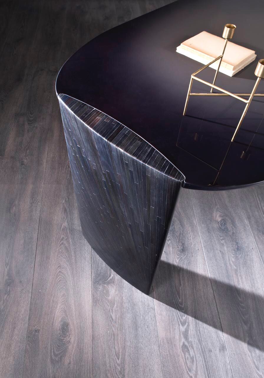 Le gambe, caratterizzate da una sezione ovoidale a vista, creano un effetto morbido e prezioso nel dettaglio.