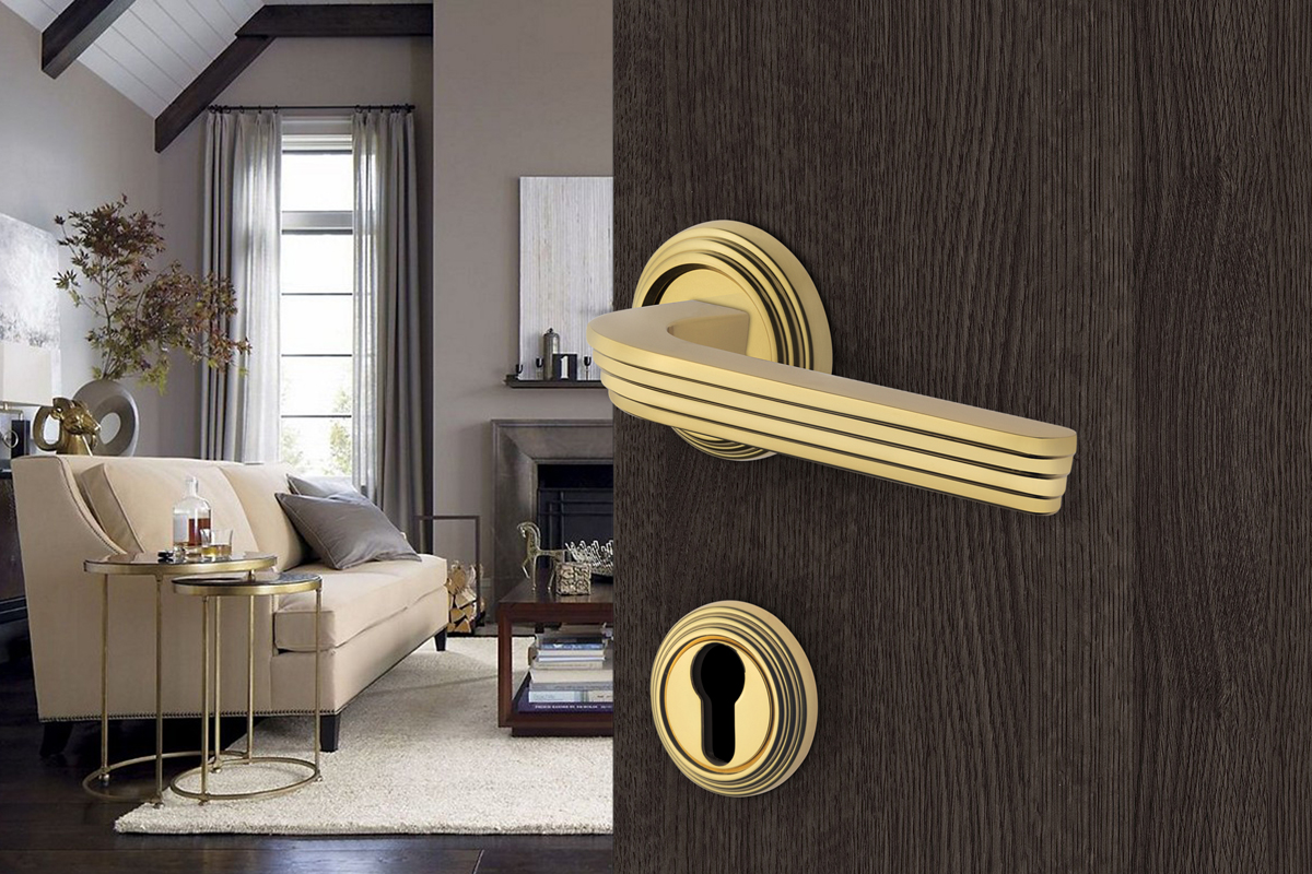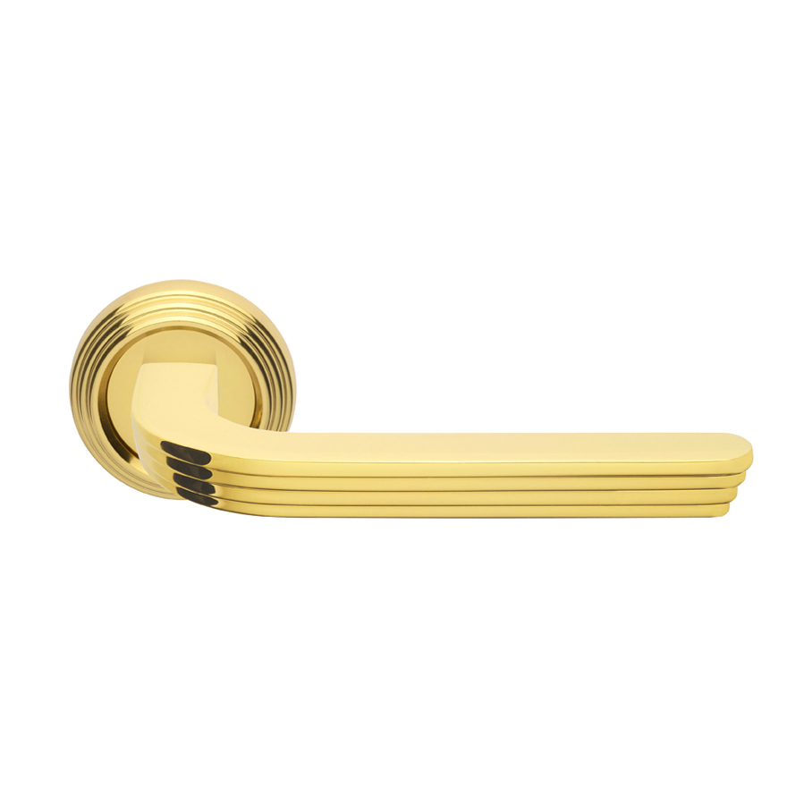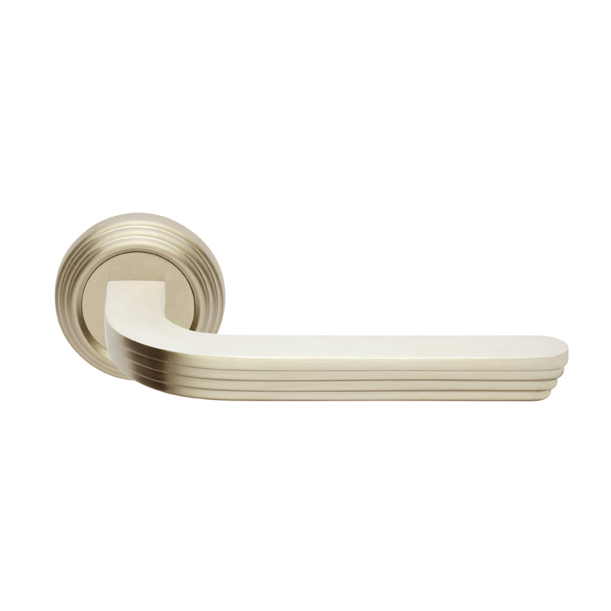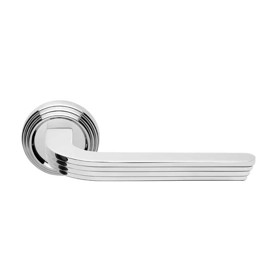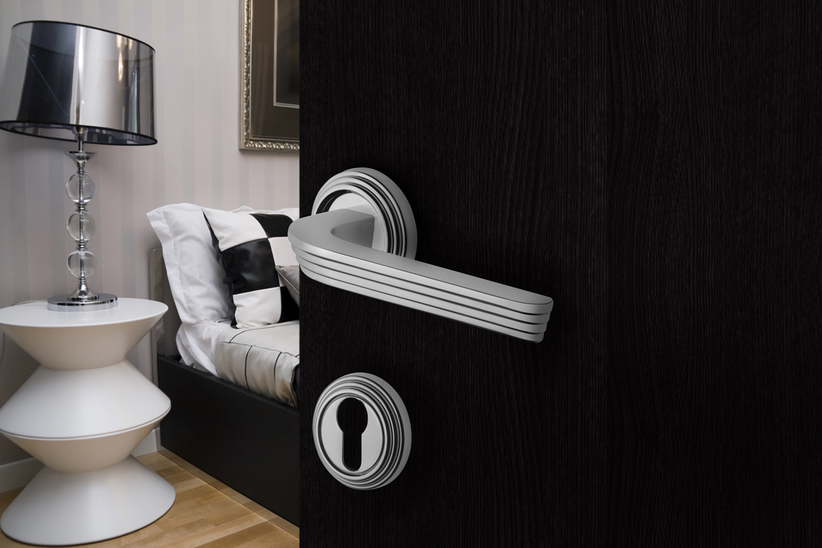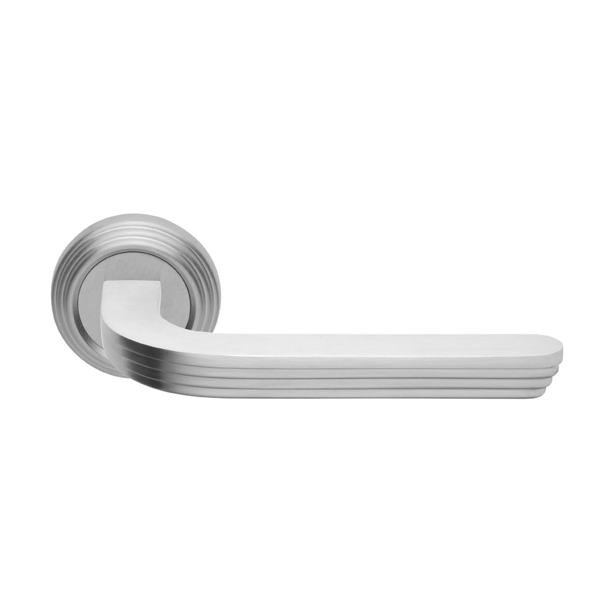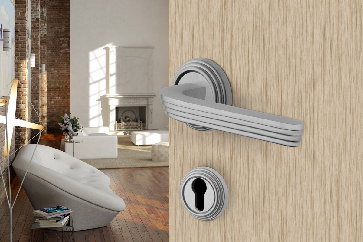 La rosetta si coordina alla maniglia, presentandosi con lo stesso disegno a gradini.