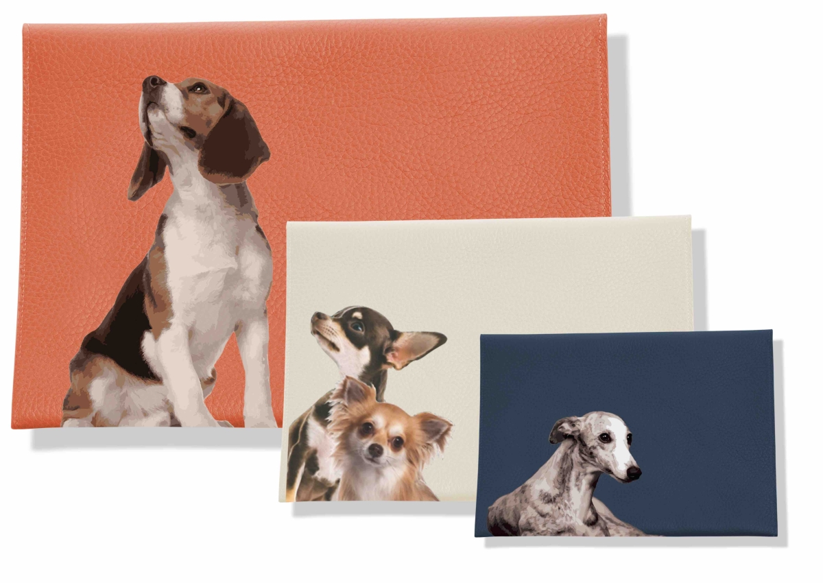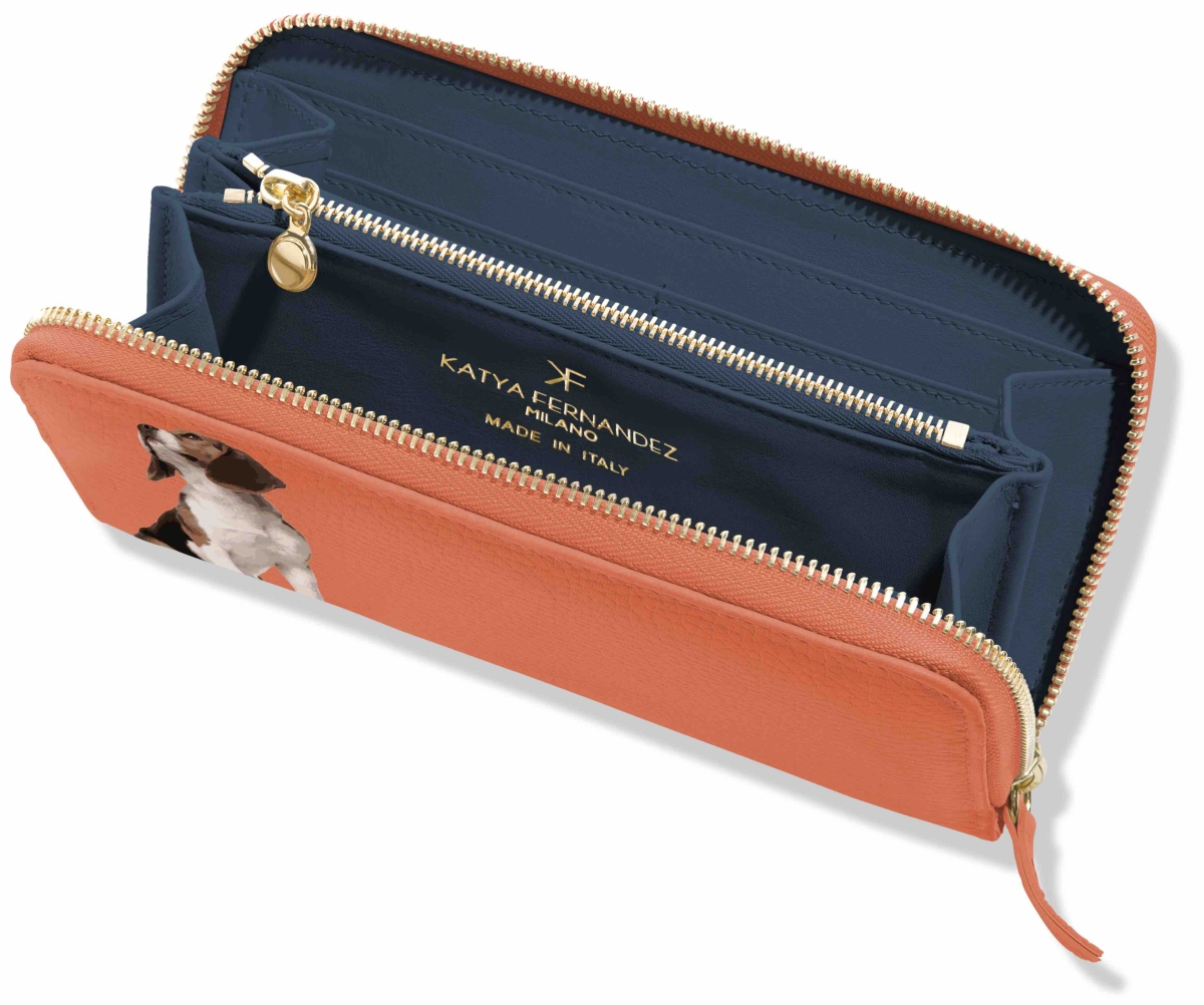 Beagle, Bassotto, Labrador, Bulldog, Dalmata e altre simpaticissime razze di cagnolini sono le protagoniste indiscusse di eleganti borse, portafogli, portacarte, foulard che immediatamente conquistano lo sguardo.