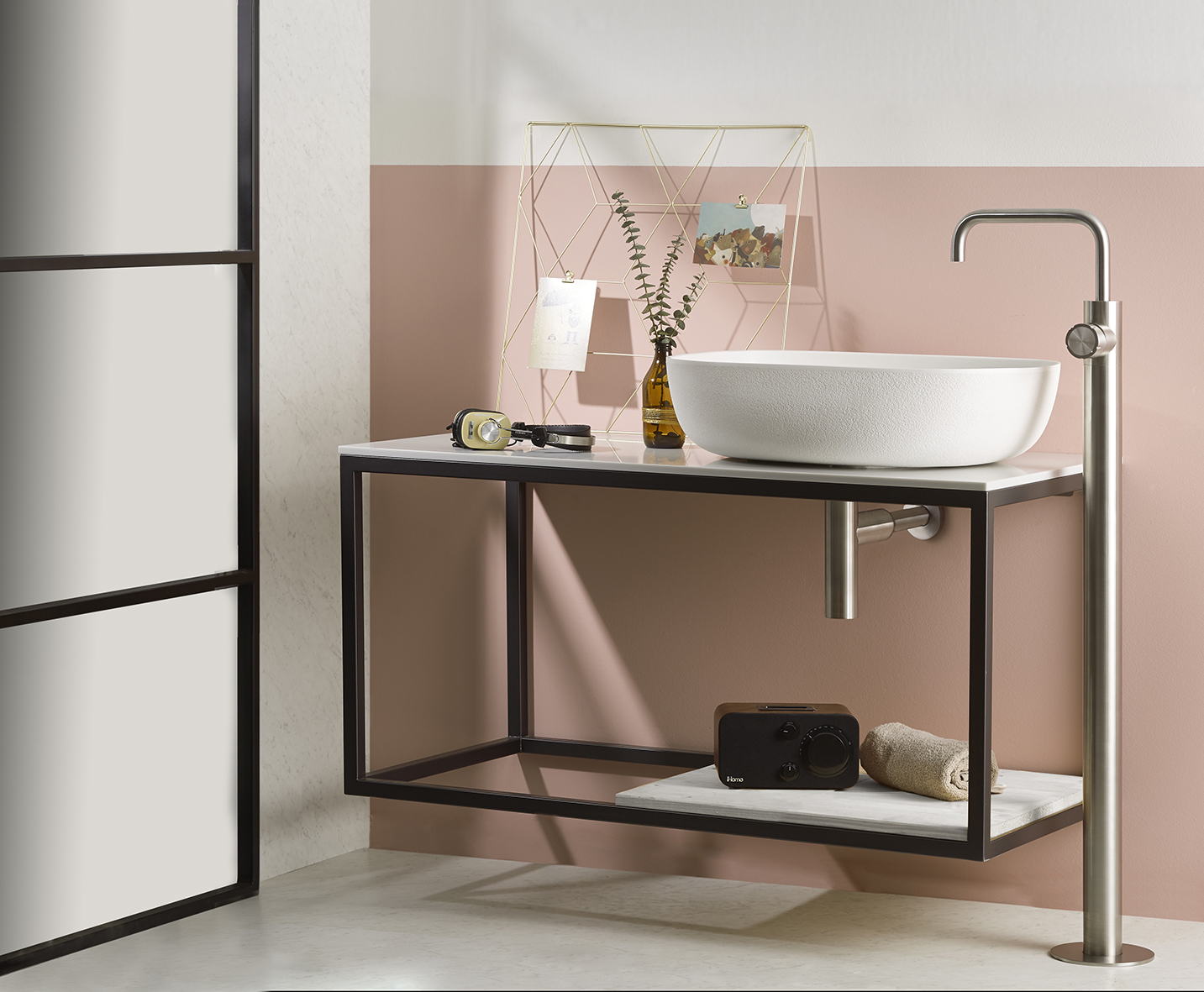 Tra le composizioni possibili della serie Synth la soluzione a tre fori, con comandi separati per acqua fredda e calda, è un plus importante: originale nella versione con i comandi separati e svincolati dalla canna, che lascia spazio alla creatività del progetto ed a visioni singolari d’arredo.