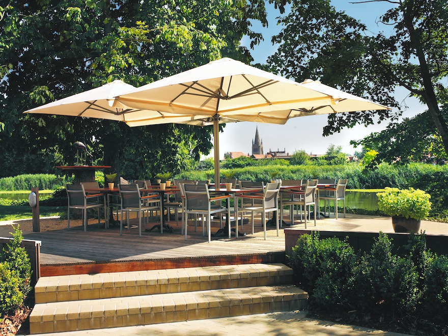 Infatti, sullo stesso palo di sostegno opportunamente progettato possono essere installati – ed eventualmente aggiunti in un secondo tempo – da uno a quattro ombrelloni per coprire agevolmente fino a 38 metri quadri di area esterna. Inoltre, MaPro P6 assicura grande versatilità d’impiego: può essere agevolmente fissato al pavimento, oppure alla parete, a seconda delle necessità. La copertura è disponibile nella versione rotonda (con diametro di 3,50 metri) oppure quadrata (da 2,50 o 3 metri per lato).