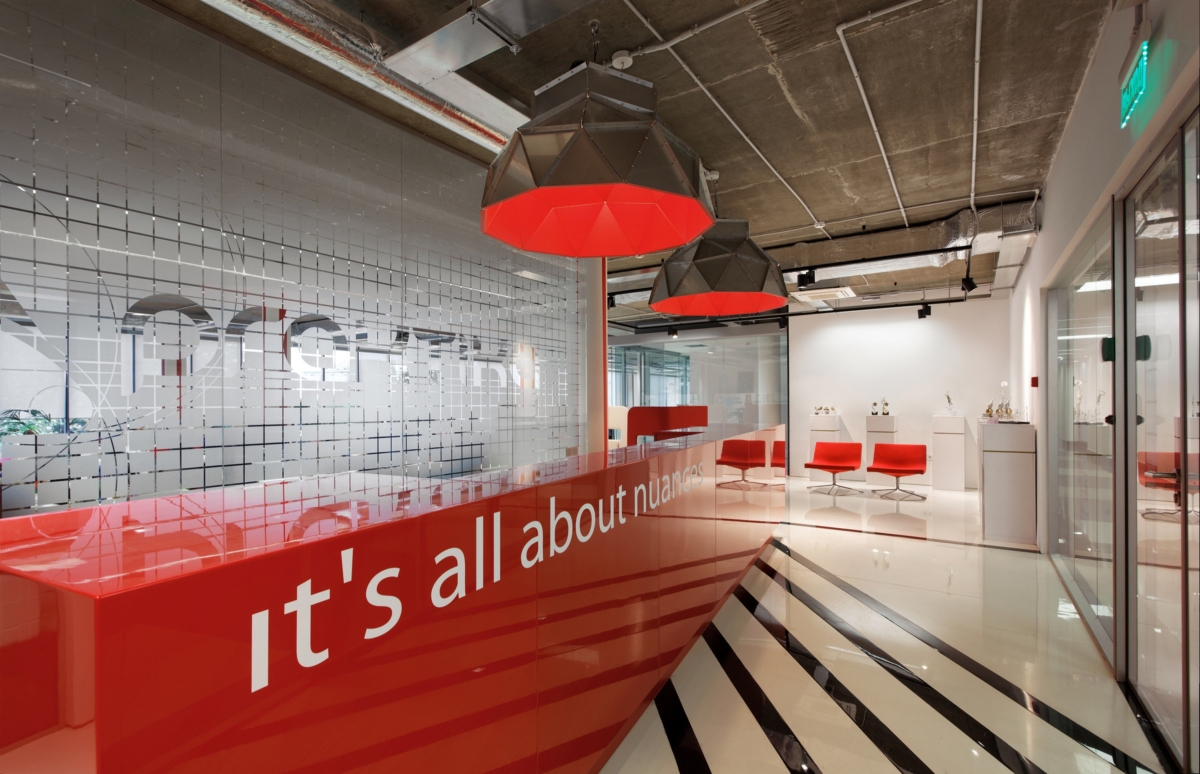 Il rosso è indice di autostima quindi può essere utilizzato negli uffici, è ideale ad esempio negli spazi di accoglienza, dove è importante comunicare il carattere dell’azienda, ad esempio sia su alcune pareti che sul banco reception, oppure anche qui possiamo inserire degli arredi come un divano o delle sedute. Un altro effetto che può essere interessante dal punto di vista dell’arredo di spazi ufficio è che il rosso stimola la creatività, quindi è molto adatto agli spazi creativi, soprattutto in declinazioni che tendono all’arancio.