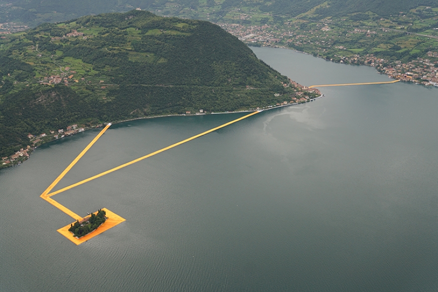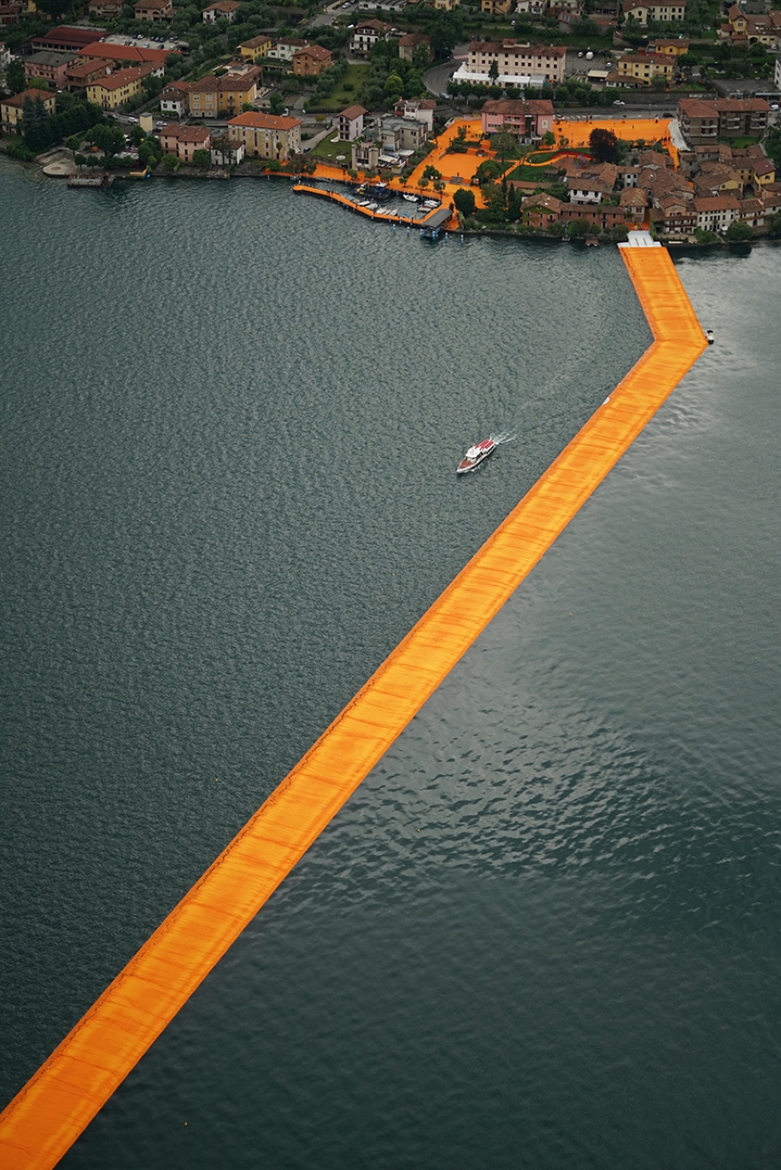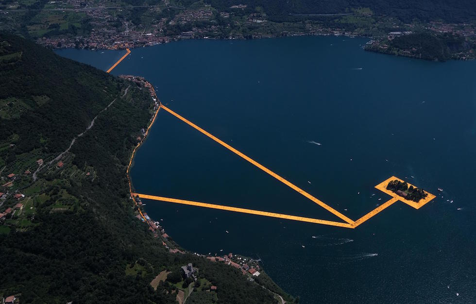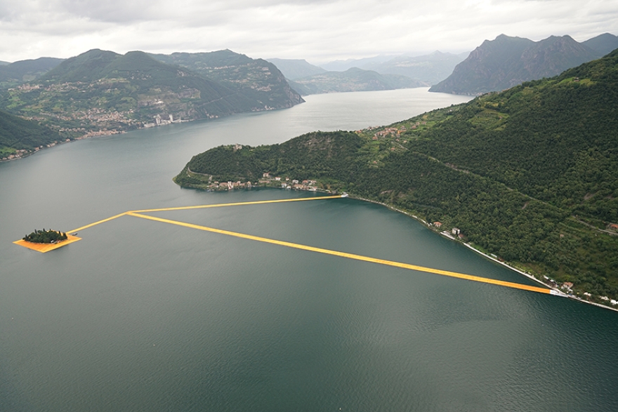 The Floating Piers è l’ultimo progetto dell’artista Christo, ambientato sul lago d’Iseo, circa tre chilometri di moduli galleggianti ricoperti di stoffa giallo intenso formano la passerella galleggiante che congiunge vari punti del lago d’Iseo tra cui Sulzano, Montisola e l’isola di San Paolo.