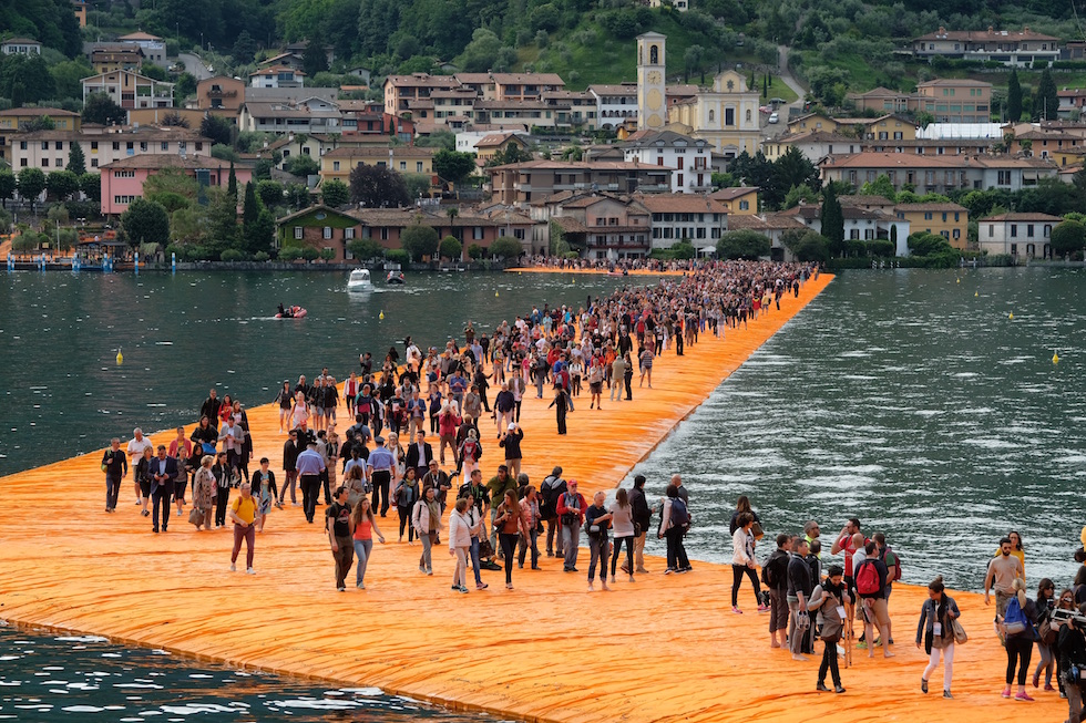 Jeanne-Claude compagna di vita e di creatività dell’artista è scomparsa nel novembre 2009, ma Christo ha continuato a perseguire la realizzazione delle loro opere. nel 2014, l’artista che già conosceva il lago d’Iseo fin dagli anni ’60 ha riflettuto sul fatto che Montisola è l’isola lacustre più alta d’Europa e che la sua popolazione, circa 2000 abitanti, deve prendere il traghetto per raggiungere la sponda del lago ed ha ritenuto interessante disegnare qui una passerella che congiungesse i due punti.